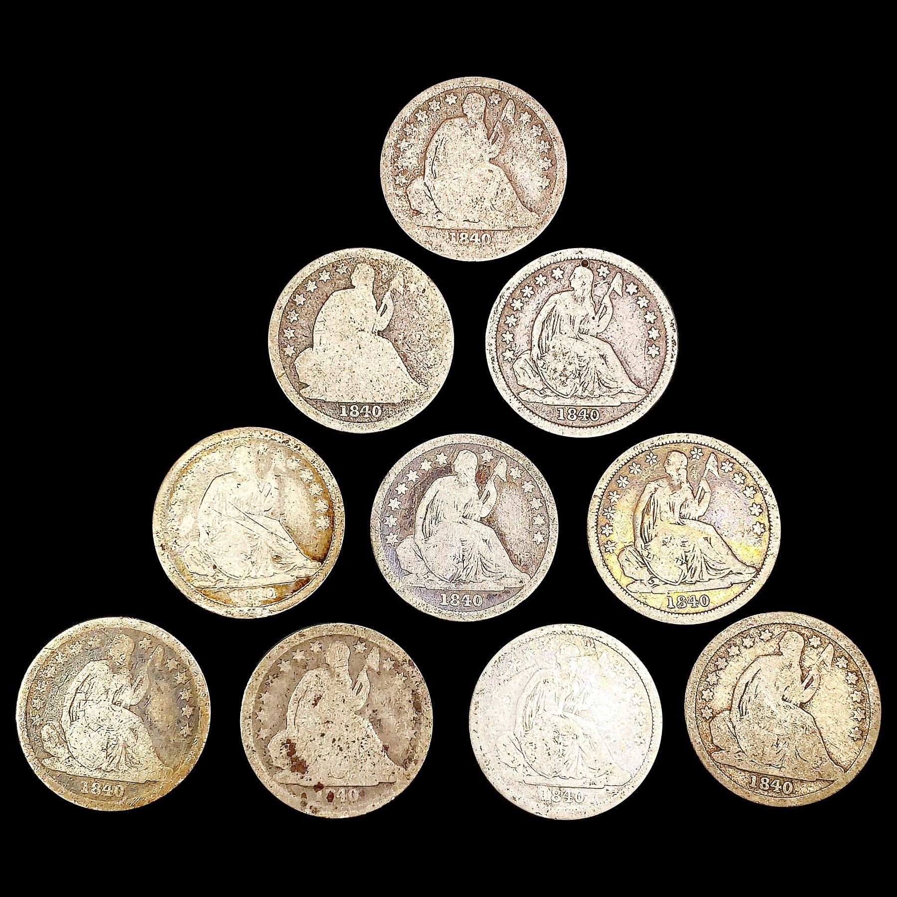 [10] 1840 Seated Liberty Dimes NICELY CIRCULATED