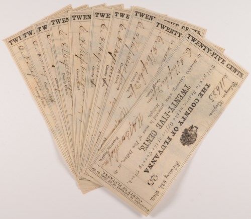 10-1863 TWENTY FIVE CENT COUNTY OF FLUVANNA, VA NOTES CU'S