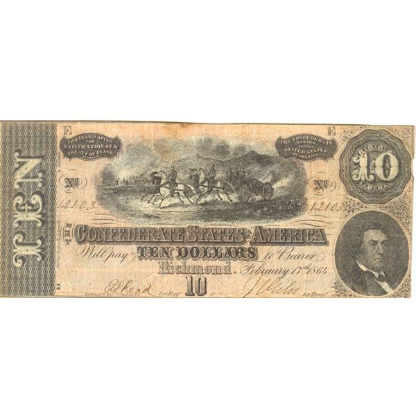 $10 1864 Confederate Note, Richmond,VA, VF-XF+ **|**|** $10 1864 Confederate Note, Richmond,VA, VF-XF+ ; MSRP: $0