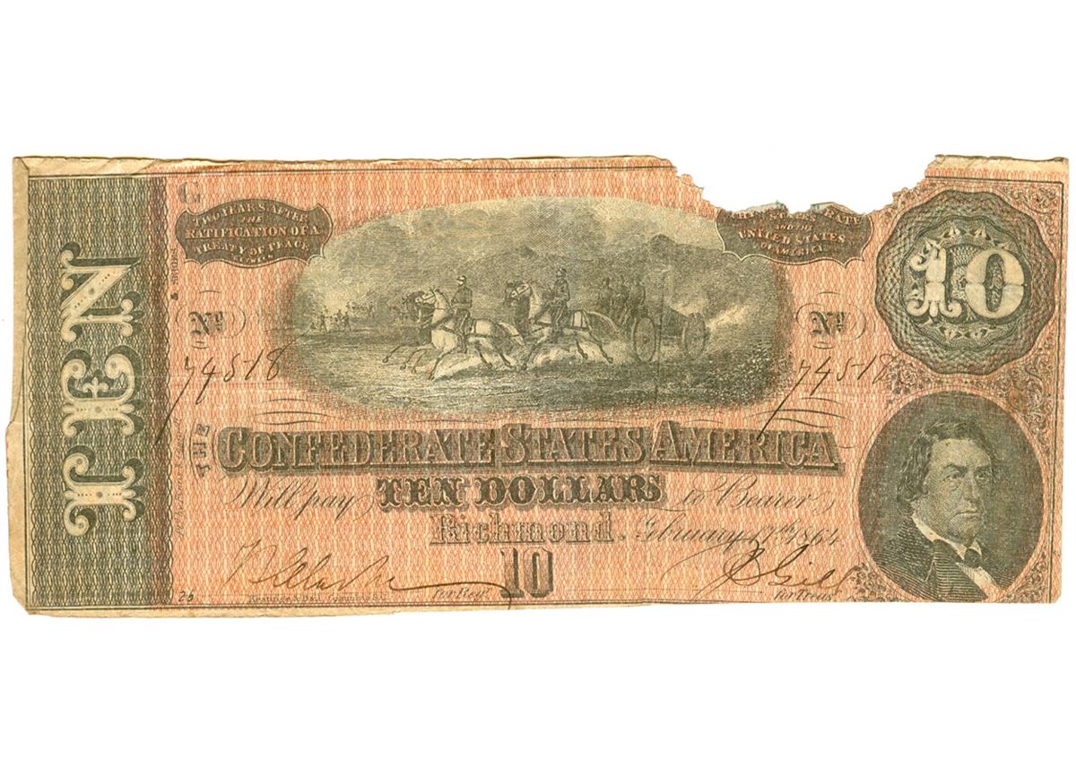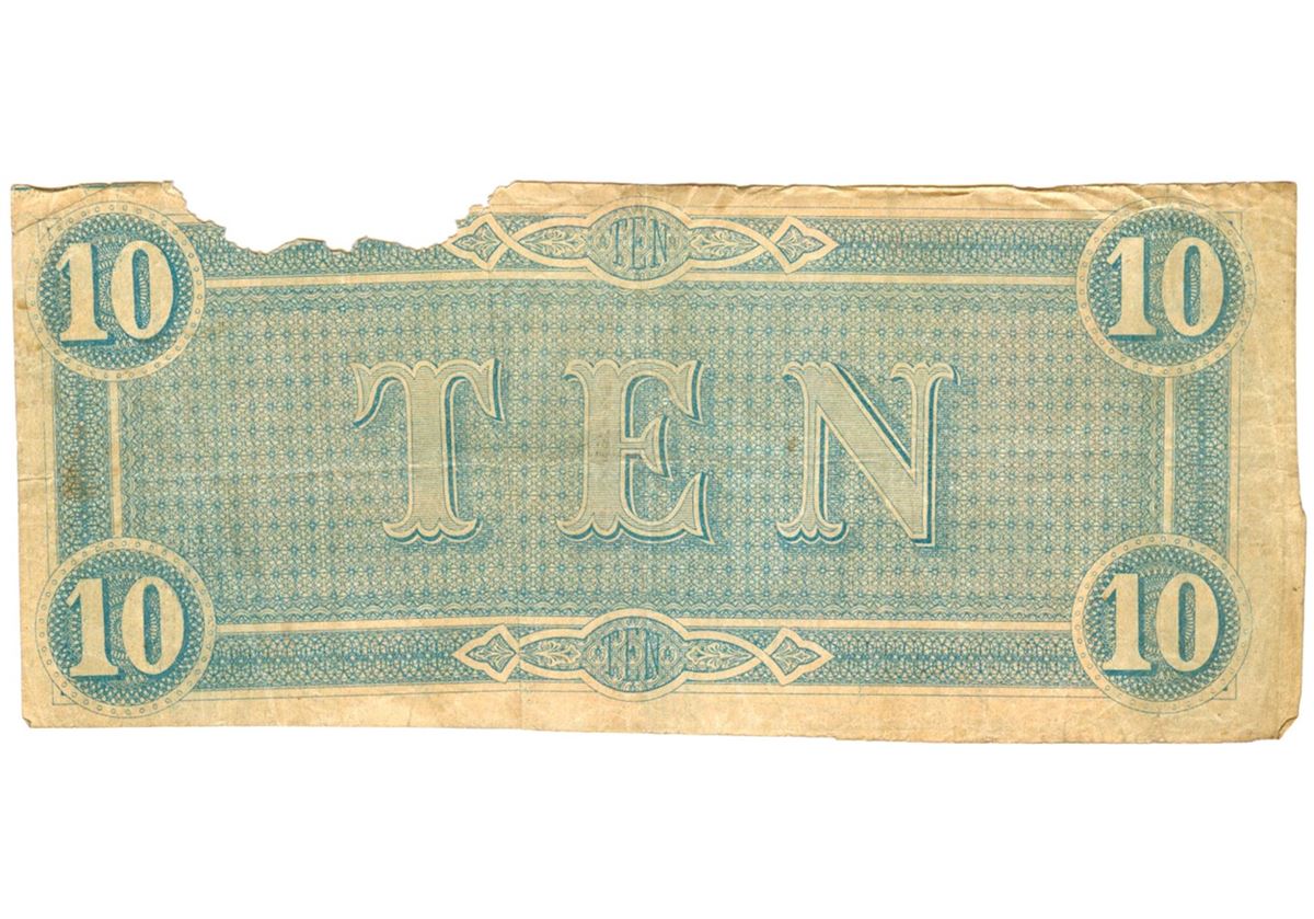 One $10 1864 Richmond Virginia Confederate States of America Bank Note.