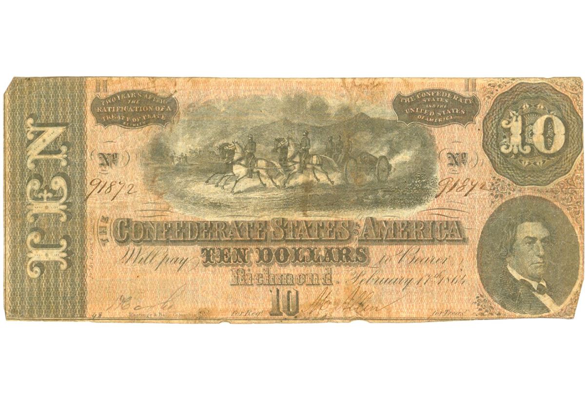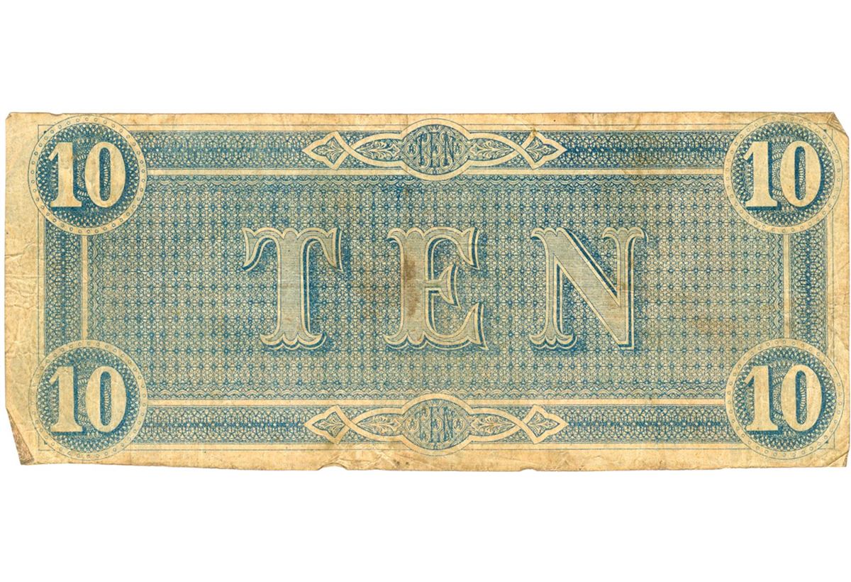 One $10 1864 Richmond Virginia Confederate States of America Large Note.
