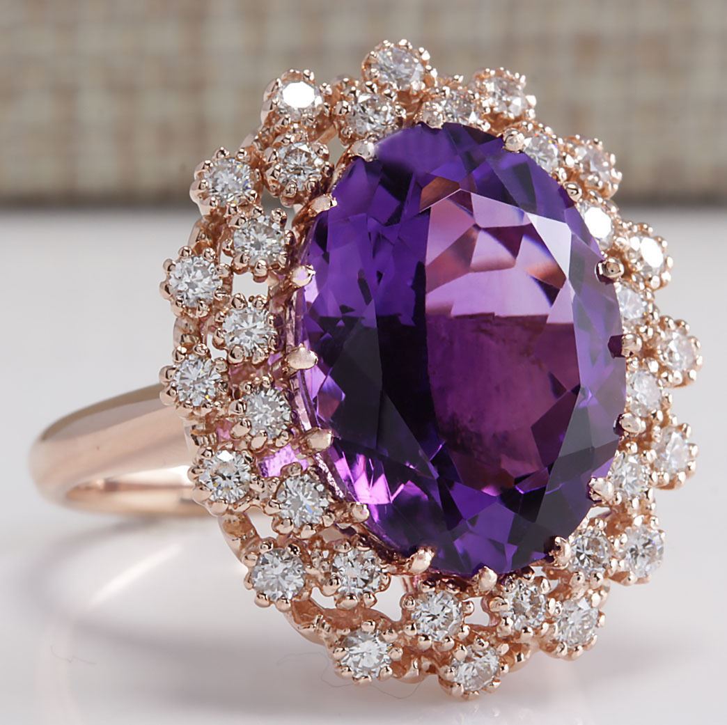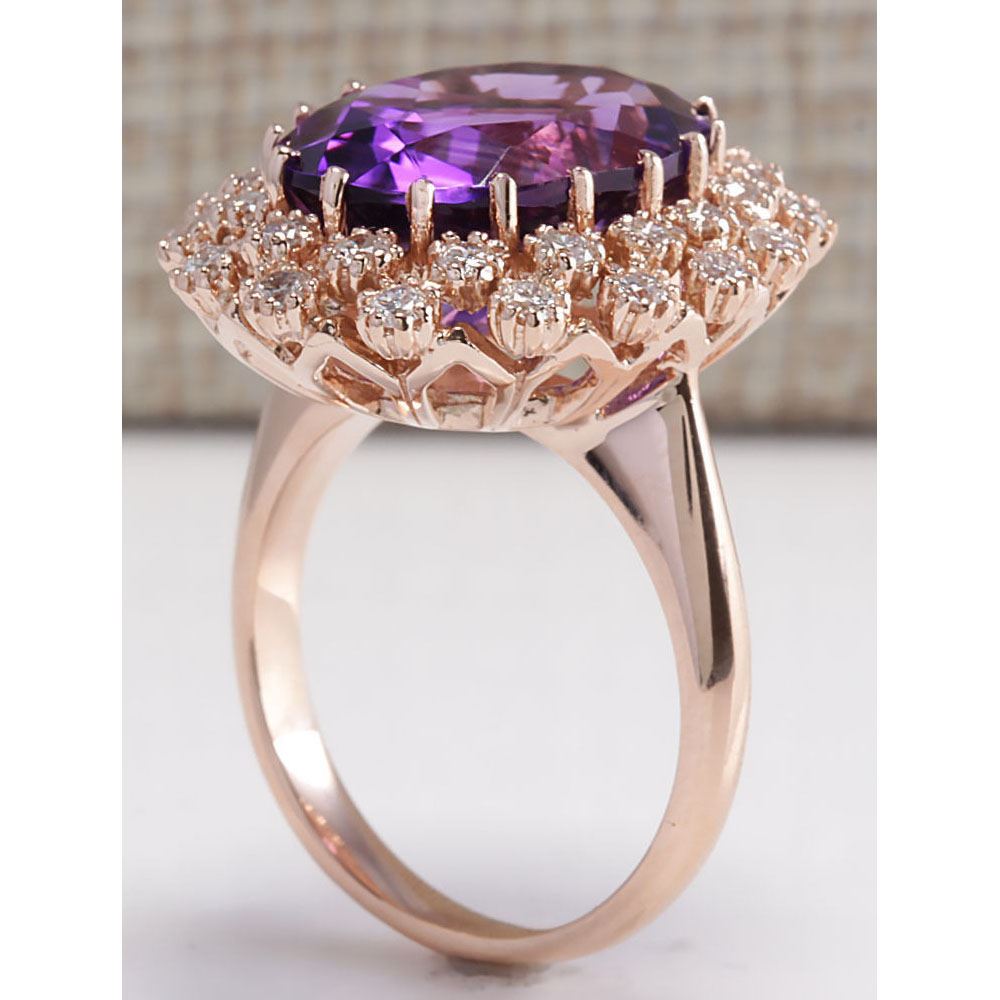 10.19 CTW Natural Amethyst And Diamond Ring In 14K Solid Rose Gold