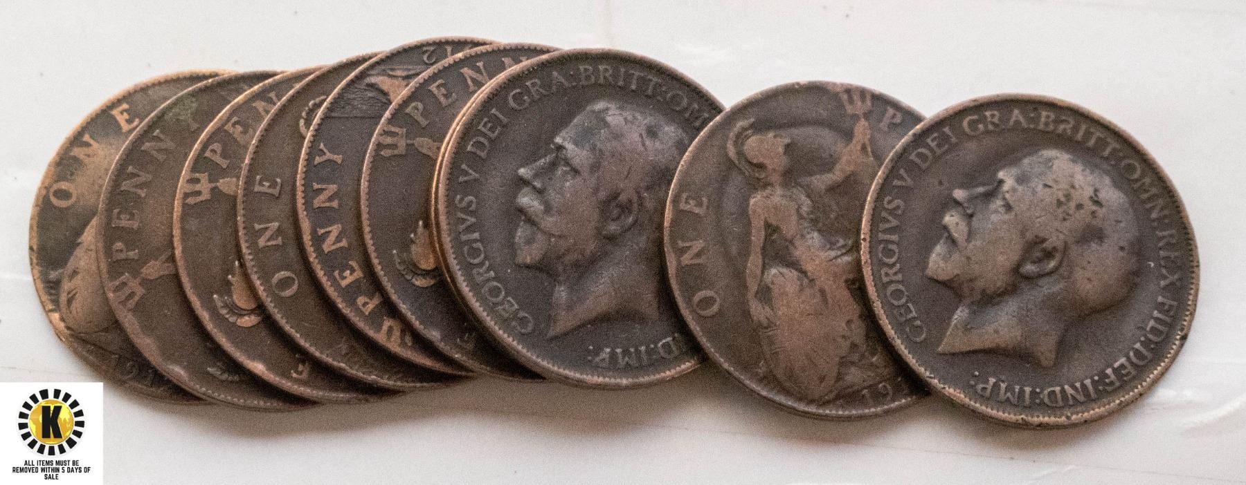 10 1912 ONE PENNY GREAT BRITAIN COINS (10 COUNT)ÿ