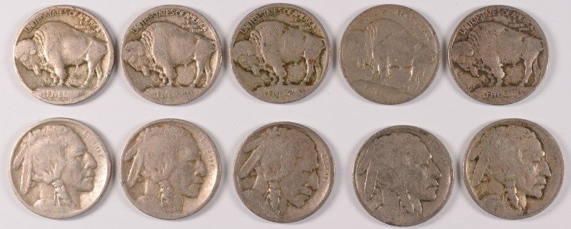 10 - 1913 BUFFALO NICKELS, AG-GOOD, SOME PROBLEMS