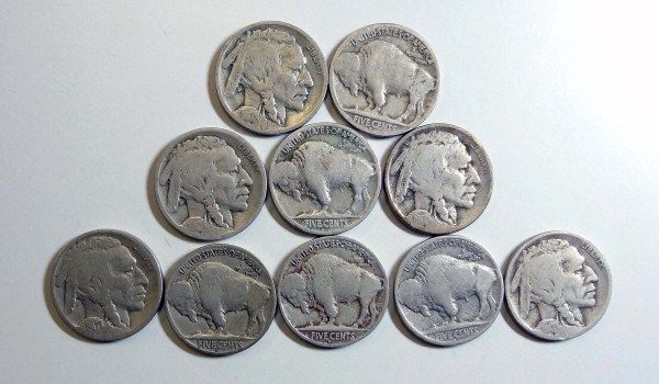 10 1917D Buffalo nickels full date G or better