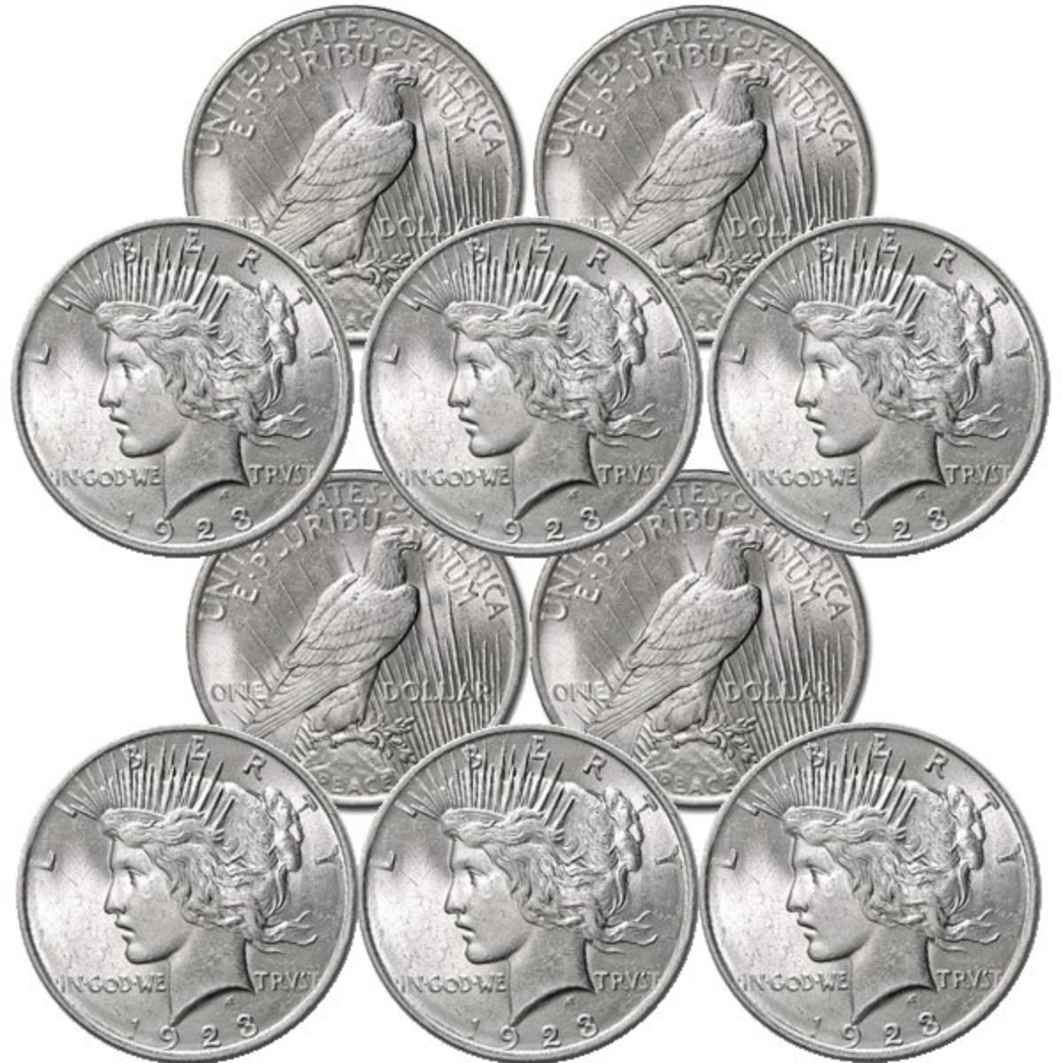90% Silver Brilliant Uncirculated Peace Dollars all 1923 date. Please note all terms apply to each item in sale. All sales final, all bids are an acceptance of all terms.