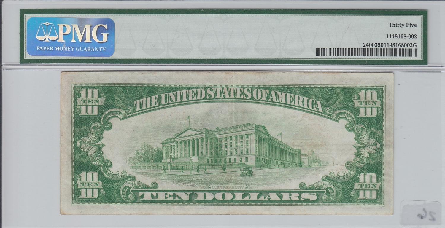 $10 1928 GOLD CERTIFICATE PMG CHOICE VF 35