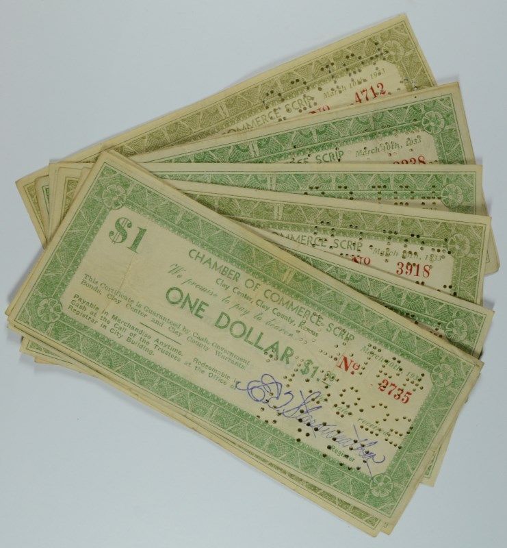 (10) 1933 DEPRESSION SCRIPT (CLAY COUNTY, KS) $1