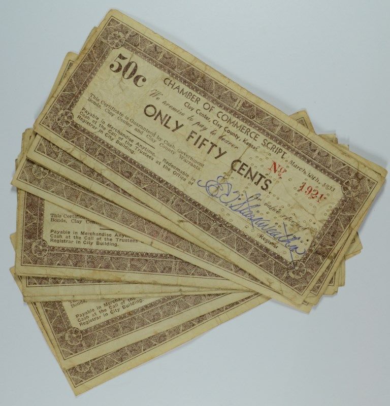 (10) 1933 DEPRESSION SCRIPT (CLAY COUNTY, KS) FIFTY CENTS