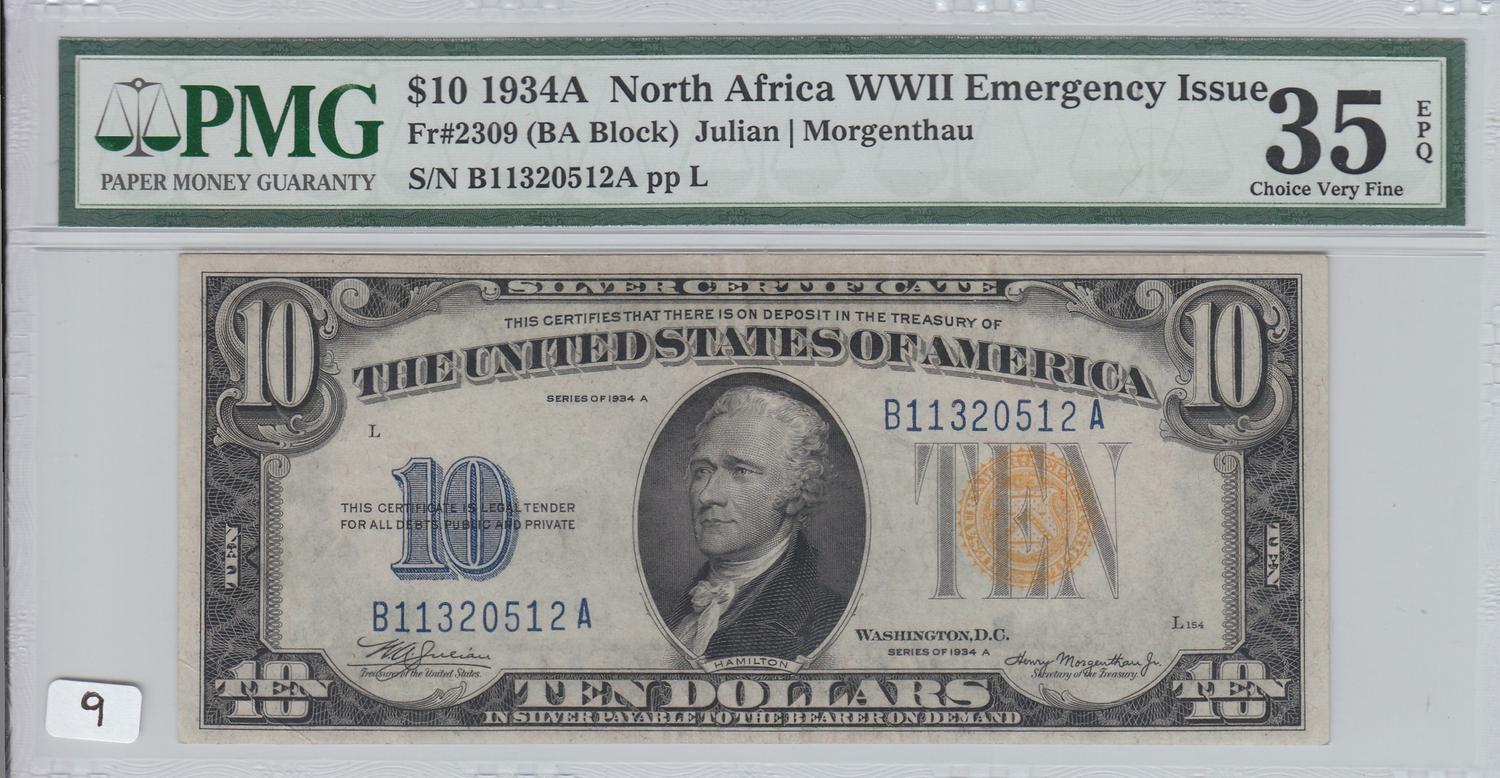 $10 1934 NORTH AFRICA EMERGENCY ISSUE PMG CHOICE 35