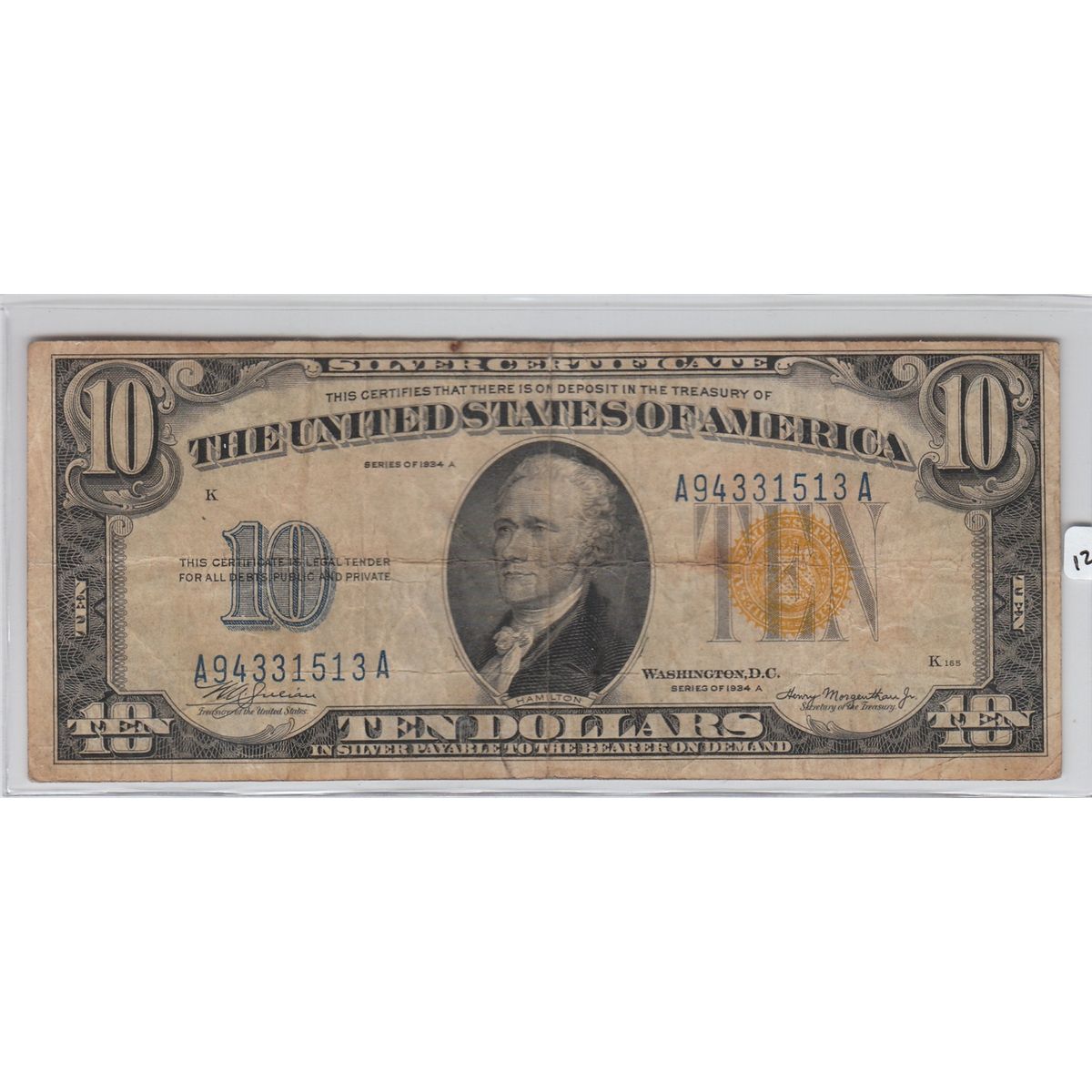 $10 1934 NORTH AFRICA SILVER CERTIFICATE