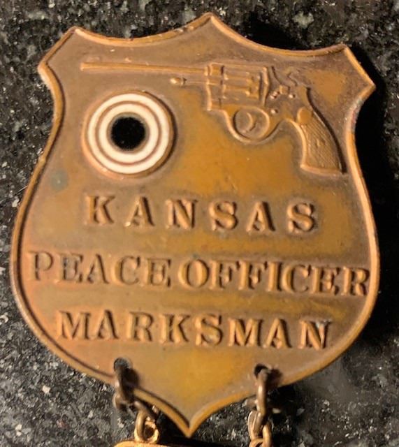 Copper shield is well struck up with nice details of the large bore revolver at top.