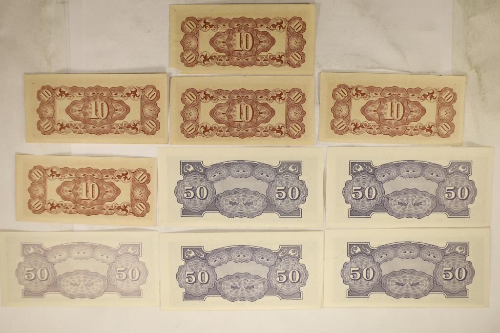 5-50 CENTAVOS. ALL THE 50 CENTAVOS ARE CRISP UNC. ONE OF THE 10 CENTS BILLS HAS SMALL TEAR FROM BOTTOM RIGHT CORNER THESE BILLS ARE NOT CU