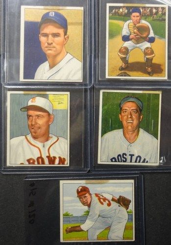 Includes #120, 123, 124, 133, 134, 135, 136, 145, 149, 150. Breaking a 1950 Bowman Baseball Partial Set, including Big Stars, Rookies, & Semi-Stars. These Cards have Beautiful Color & Gloss, Clean Surface with EM-EX+ Corners with some looking NM! However, each card has a small tape mark on the top of the card. (only on the tops, backs are clear.) This is so unfortunate for such a Nice 1950 Bowman Partial Set. Book $150.00 Est. Value $30.00 - $50.00.