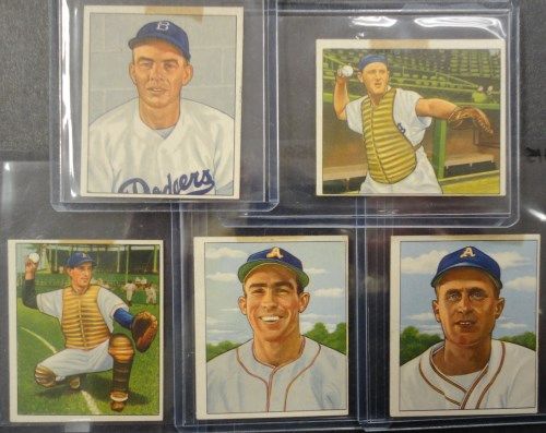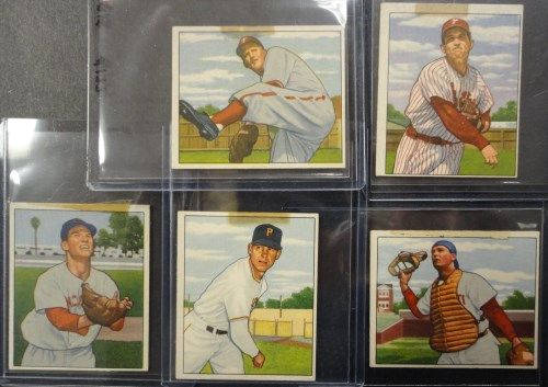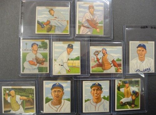 Includes: #157, 158, 159, 165, 166, 168, 171, 173, 176, 177. Breaking a 1950 Bowman Baseball Partial Set, including Big Stars, Rookies, & Semi-Stars. These Cards have Beautiful Color & Gloss, Clean Surface with EM-EX+ Corners with some looking NM! However, each card has a small tape mark on the top of the card. (only on the tops, backs are clear.) This is so unfortunate for such a Nice 1950 Bowman Partial Set. Book $150.00. Est. Value $30.00 - $50.00.