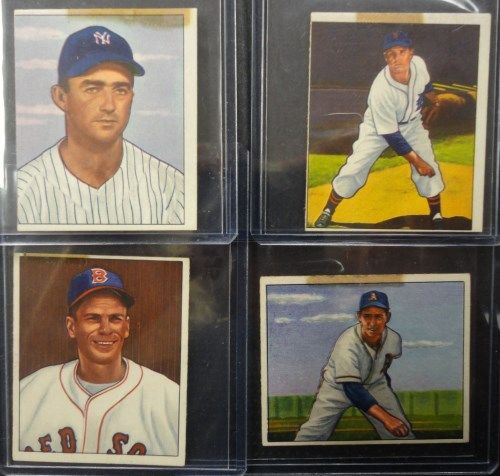Includes: #244, 250, 251, 96, 99, 102, 119, 121, 122, 141. Breaking a 1950 Bowman Baseball Partial Set, including Big Stars, Rookies, & Semi-Stars. These Cards have Beautiful Color & Gloss, Clean Surface with EM-EX+ Corners with some looking NM! However, each card has a small tape mark on the top of the card. (only on the tops, backs are clear.) This is so unfortunate for such a Nice 1950 Bowman Partial Set. Book $220.00 Est. Value $45.00 - $55.00.