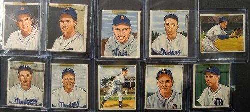 Includes: #212, 213, 214, 222, 223, 224, 242, 240, 241, 243. Breaking a 1950 Bowman Baseball Partial Set, including Big Stars, Rookies, & Semi-Stars. These Cards have Beautiful Color & Gloss, Clean Surface with EM-EX+ Corners with some looking NM! However, each card has a small tape mark on the top of the card. (only on the tops, backs are clear.) This is so unfortunate for such a Nice 1950 Bowman Partial Set. Book $150.00. Est. Value $30.00 - $50.00.