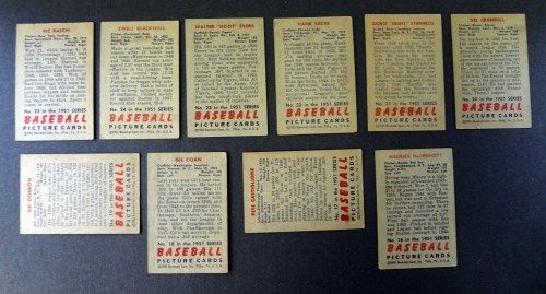 Includes #16, 17, 18, 19, 20, 21, 25 Hank Sauer VGEX, 23, 24 Ewell Blackwell EX & 25 Vic Raschi VGEX+ mostly VGEX or Better. Book $275.00 . Est Value $90.00 - $110.00.