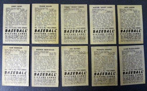 Includes #99, 102, 103, 108, 109, 110, 111, 112 Smokey Burgess EX, #114 & #115 Larry Doby EX mostly VGEX or Better. Book $205.00 Est. Value $80.00 - $100.00.