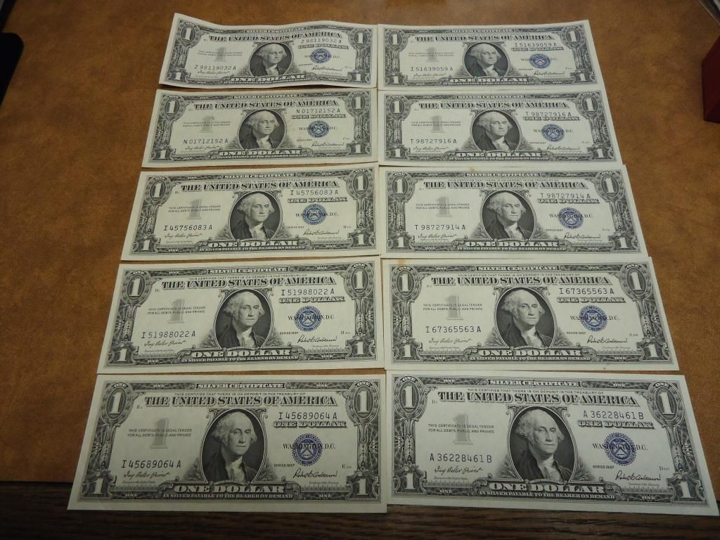 10-1957 $1 SILVER CERTIFICATES MOSTLY AU & UNC