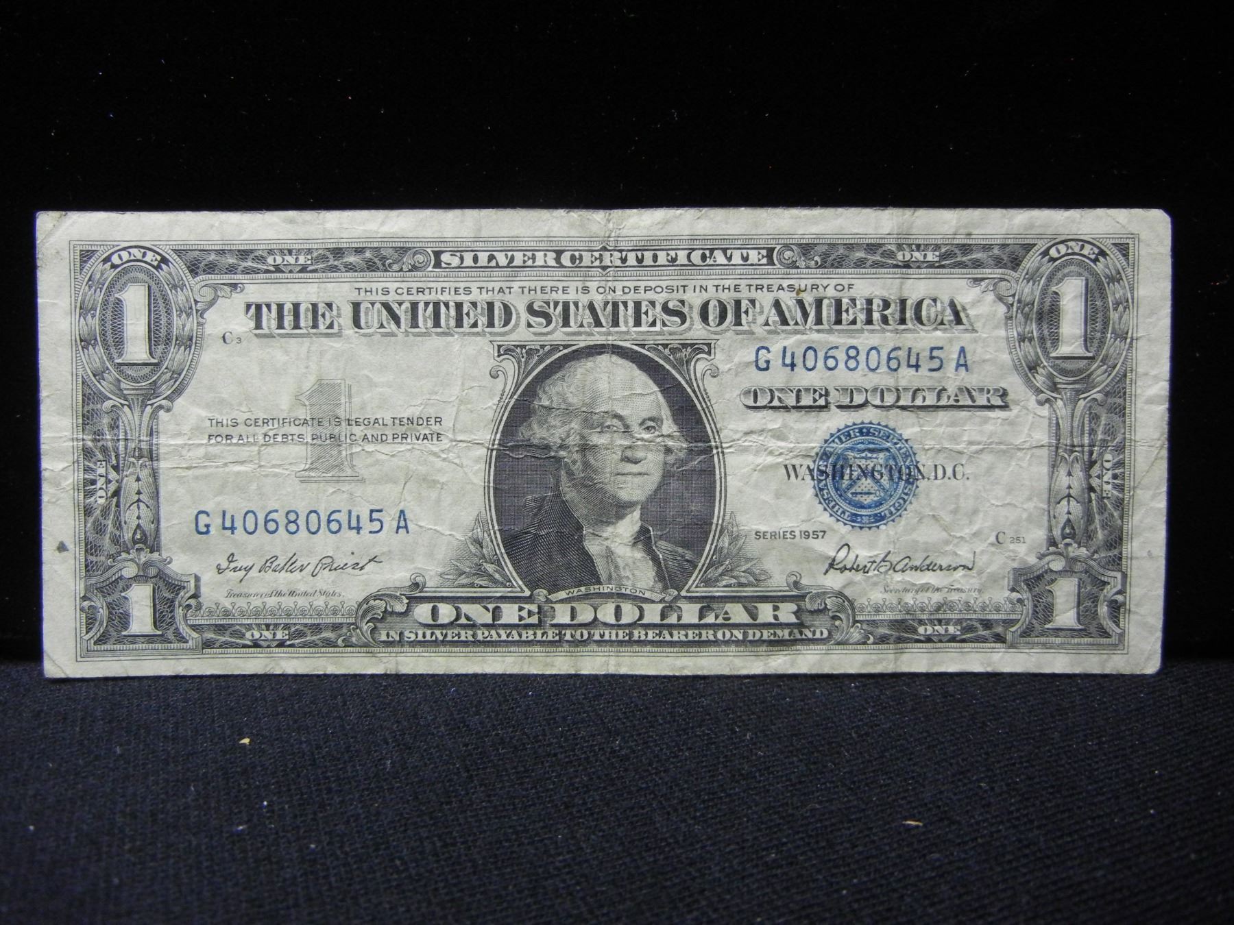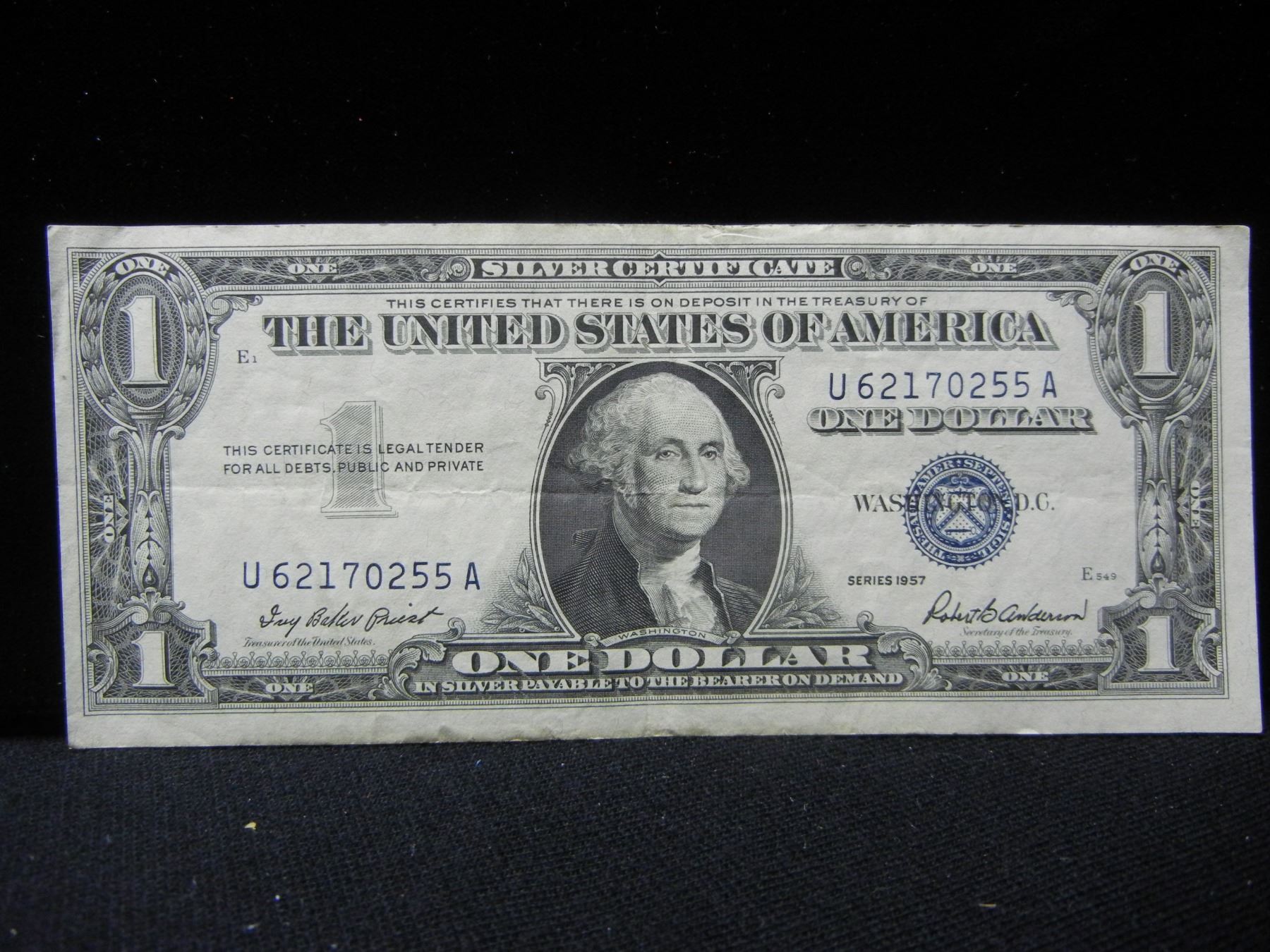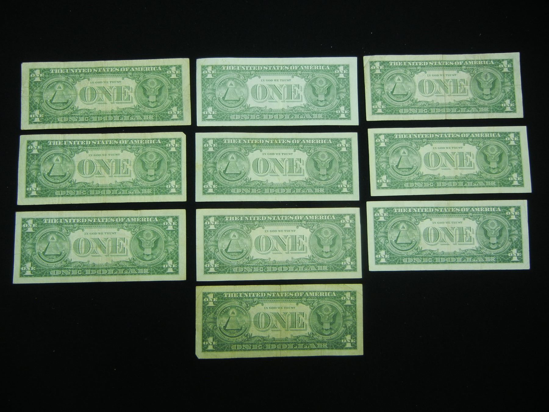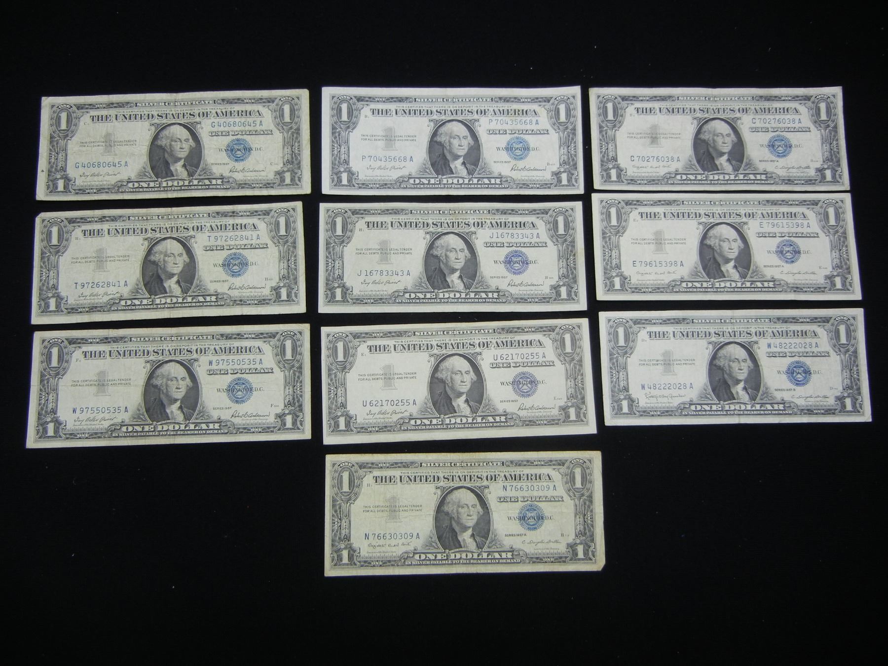 (10) 1957 One Dollar Silver Certificates, (6) 1957, (3) 57 A, (1) 57 B