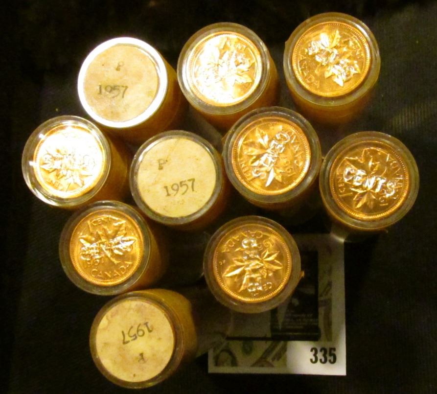 (10) 1957 Original Gem BU Solid-date Rolls of Canada Maple Leaf Cents. Each roll contains 50 pcs, all Cherry unpicked rolls.