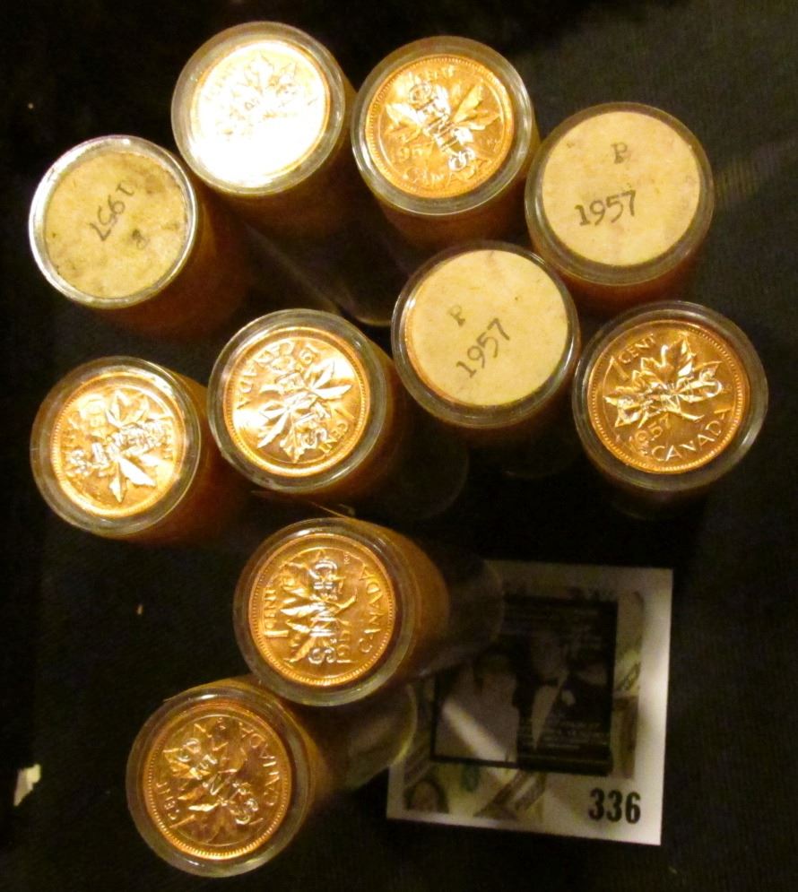 (10) 1957 Original Gem BU Solid-date Rolls of Canada Maple Leaf Cents. Each roll contains 50 pcs, all Cherry unpicked rolls.