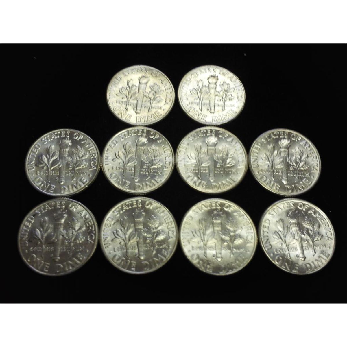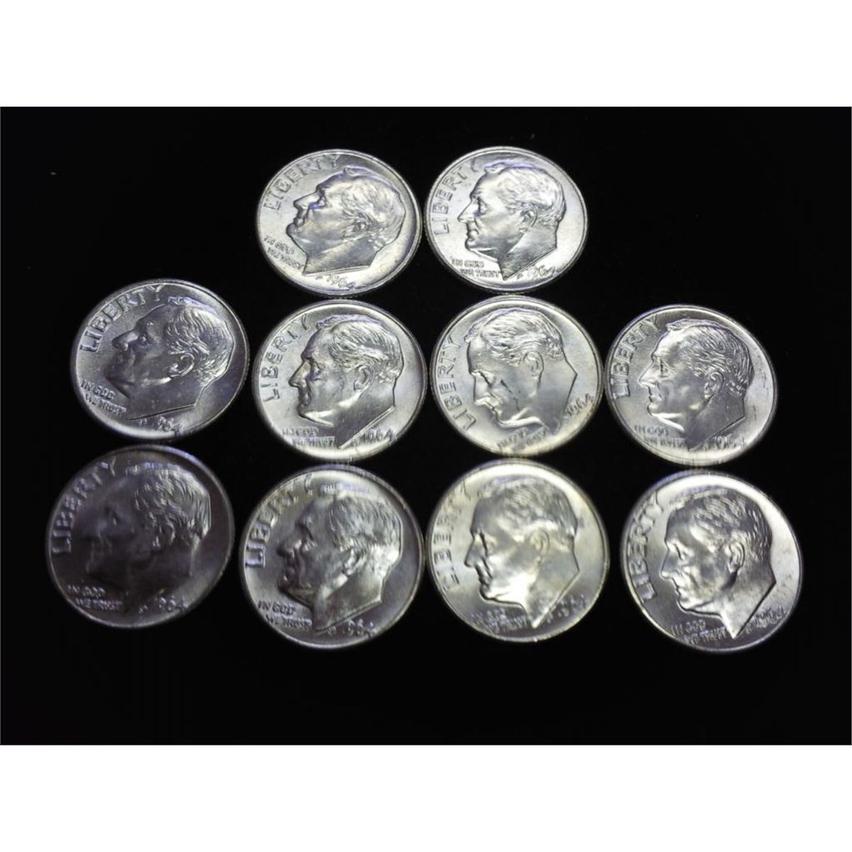 10 1964-D SILVER ROOSEVELT DIMES (UNC)