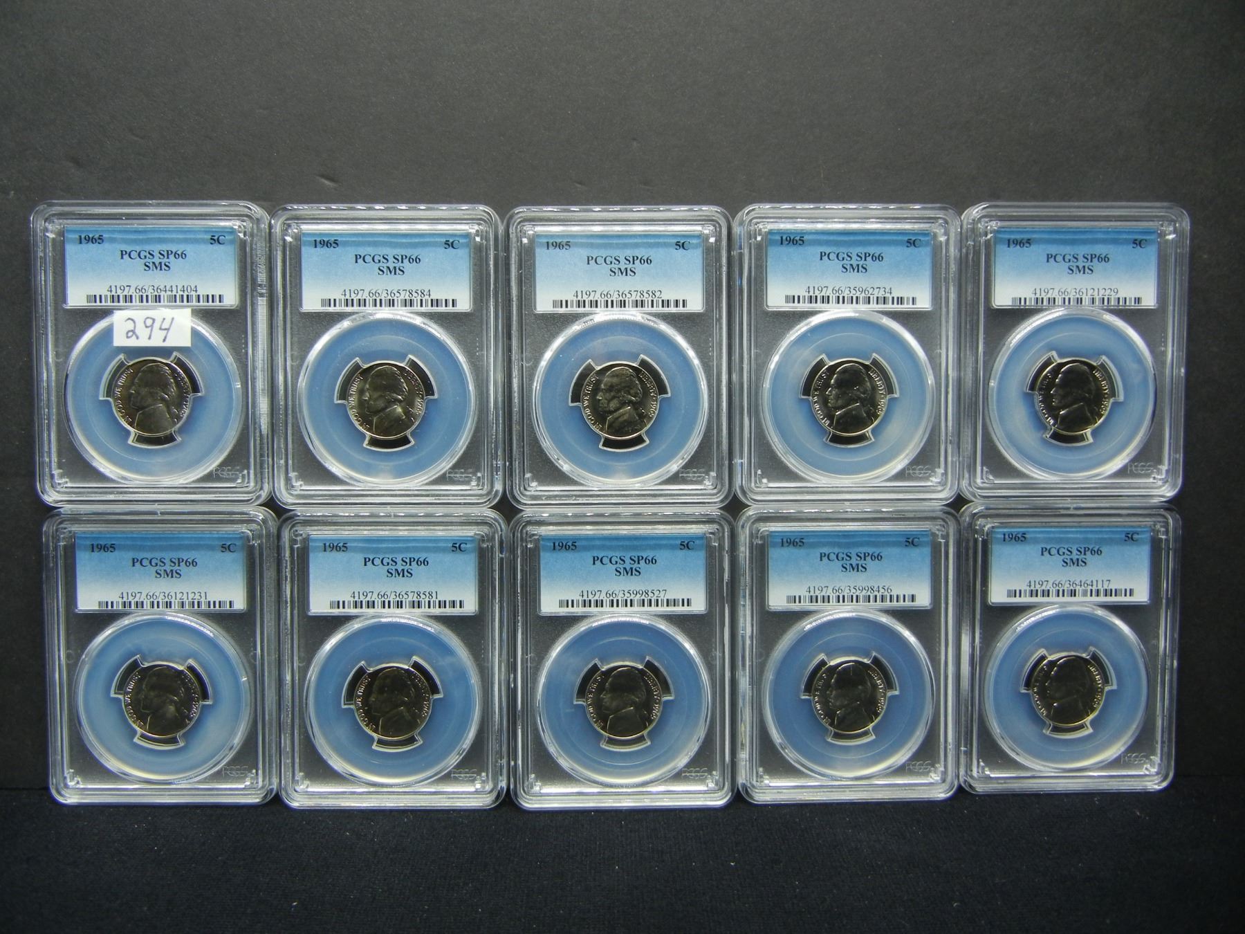 (10) 1965 Jefferson Nickels SMS PCGS SP66