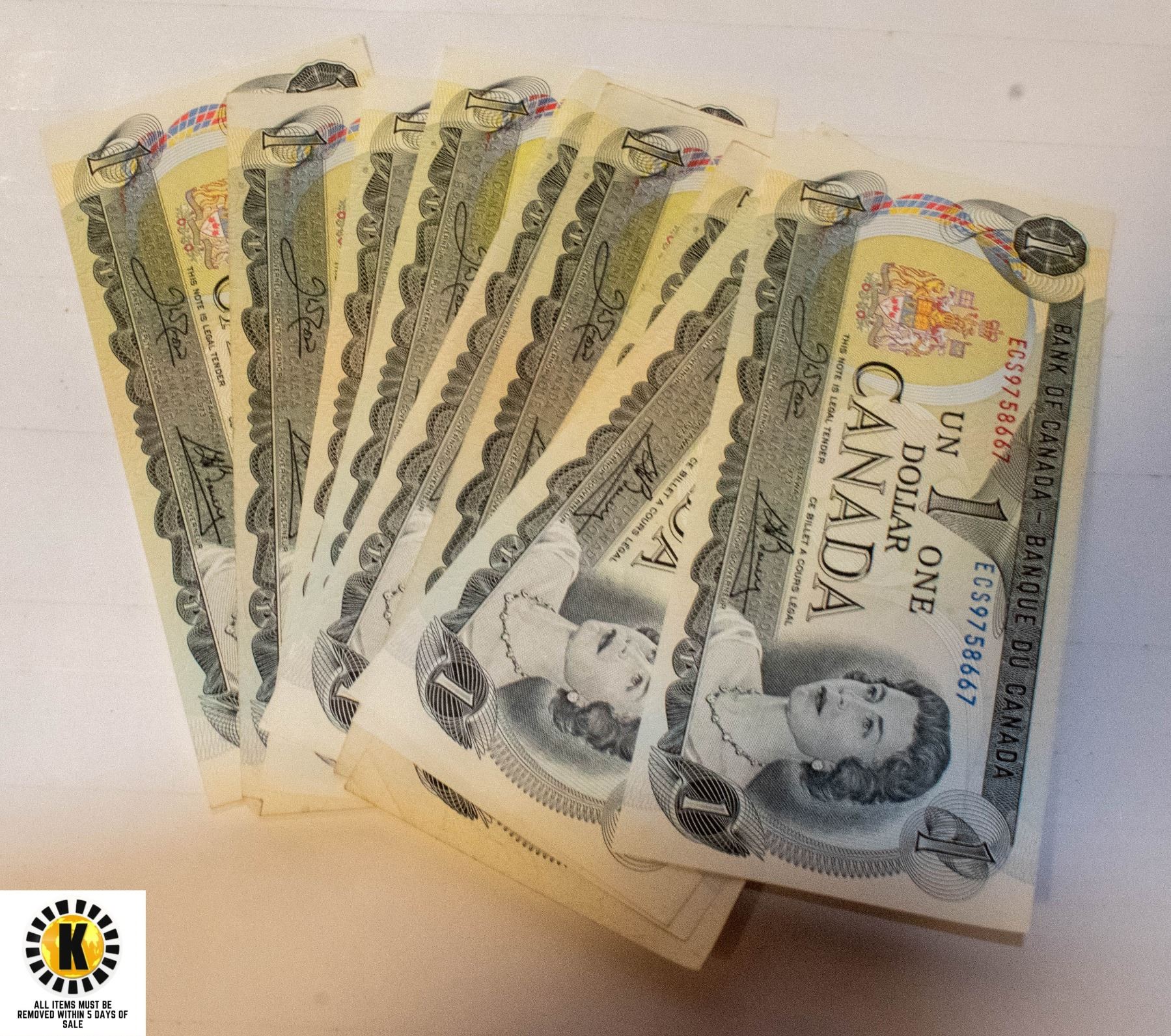 10 - 1973 CANADIAN ONE DOLLAR BILLS