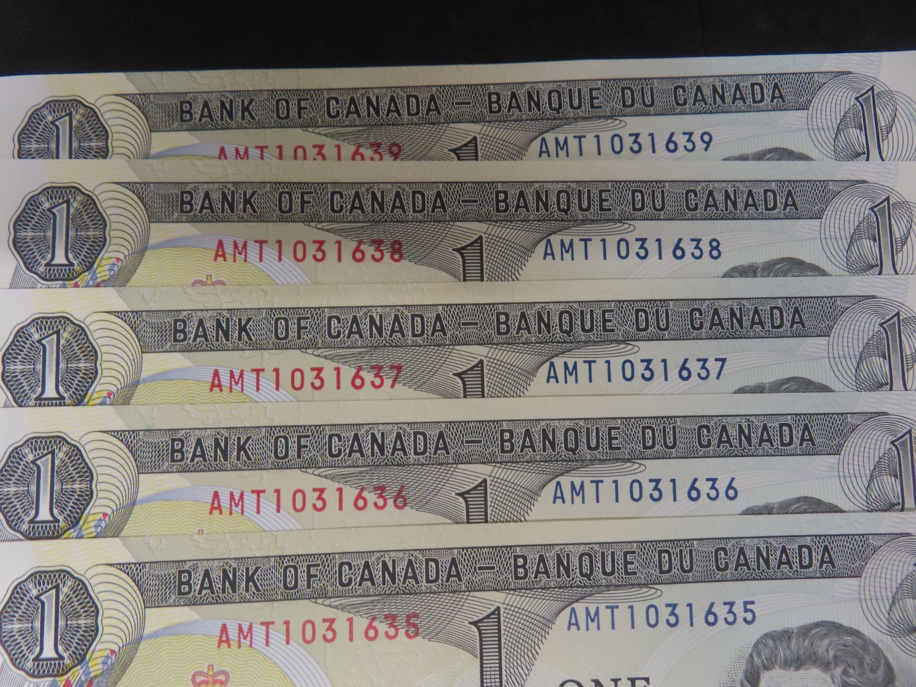 10 1973 Canadian $1 Bills, Uncirculated, With Consecutive Serial Numbers