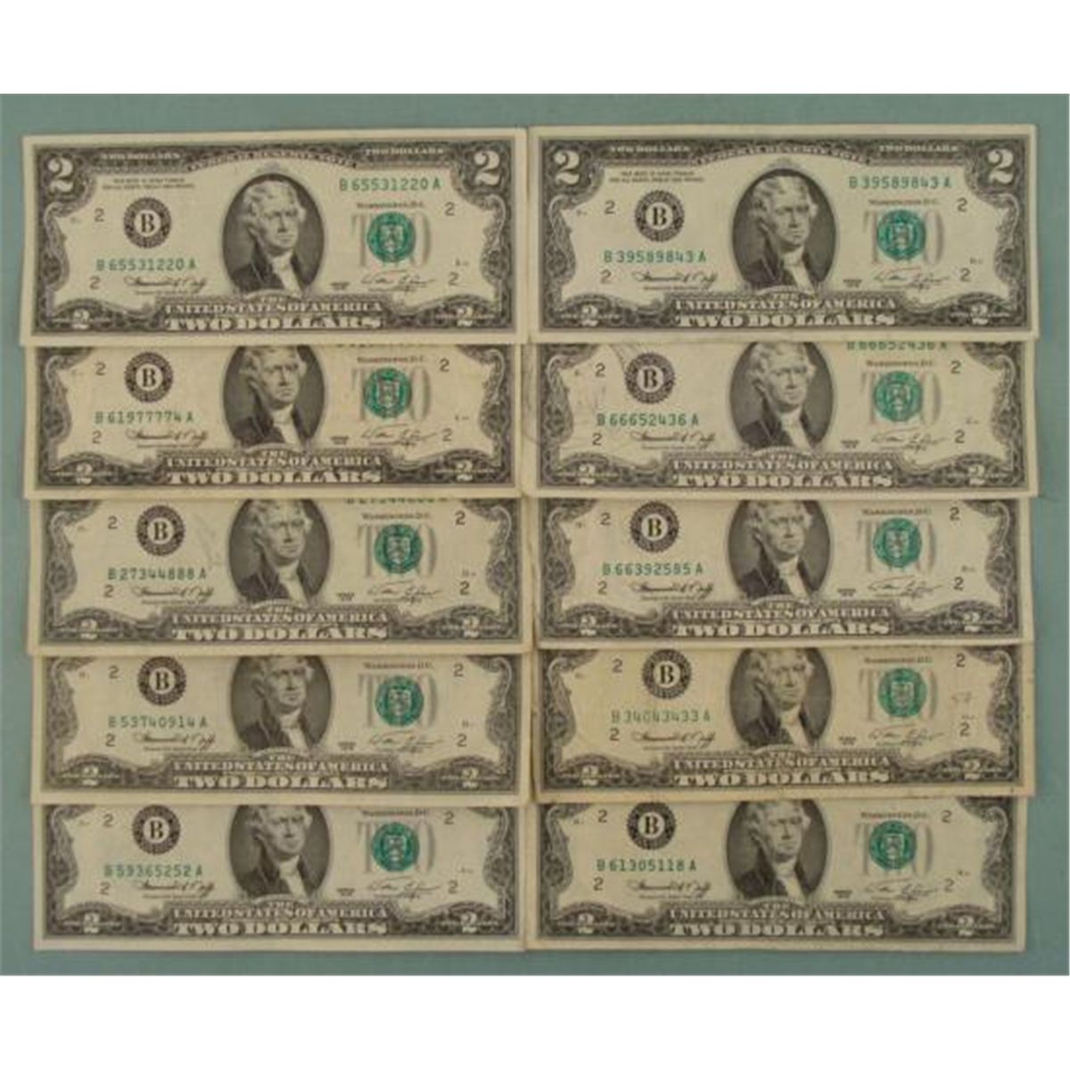 10) 1976 $2 bills * Mint: B (New York)All nice bills with no rips, holes, or tears