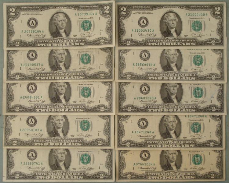 (10)1976 $2 Two Dollar Notes * Mint mark: A (Boston) Details: Nice bills- no holes, tears, or rips The bills you receive may be different from those shown *