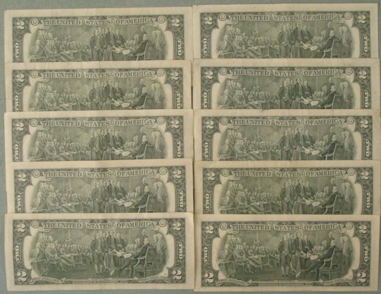 (10)1976 $2 Two Dollar Notes * Mint mark: A (Boston)Details: Nice bills- no holes, tears, or ripsThe bills you receive may be different from those shown *