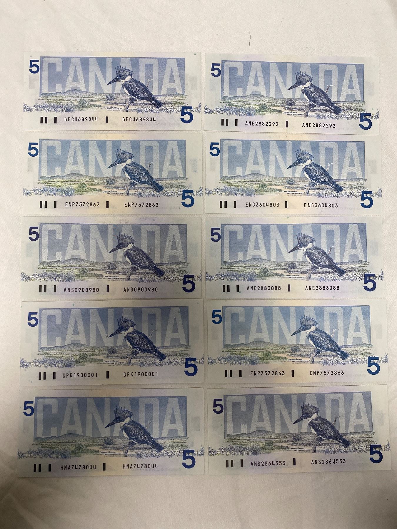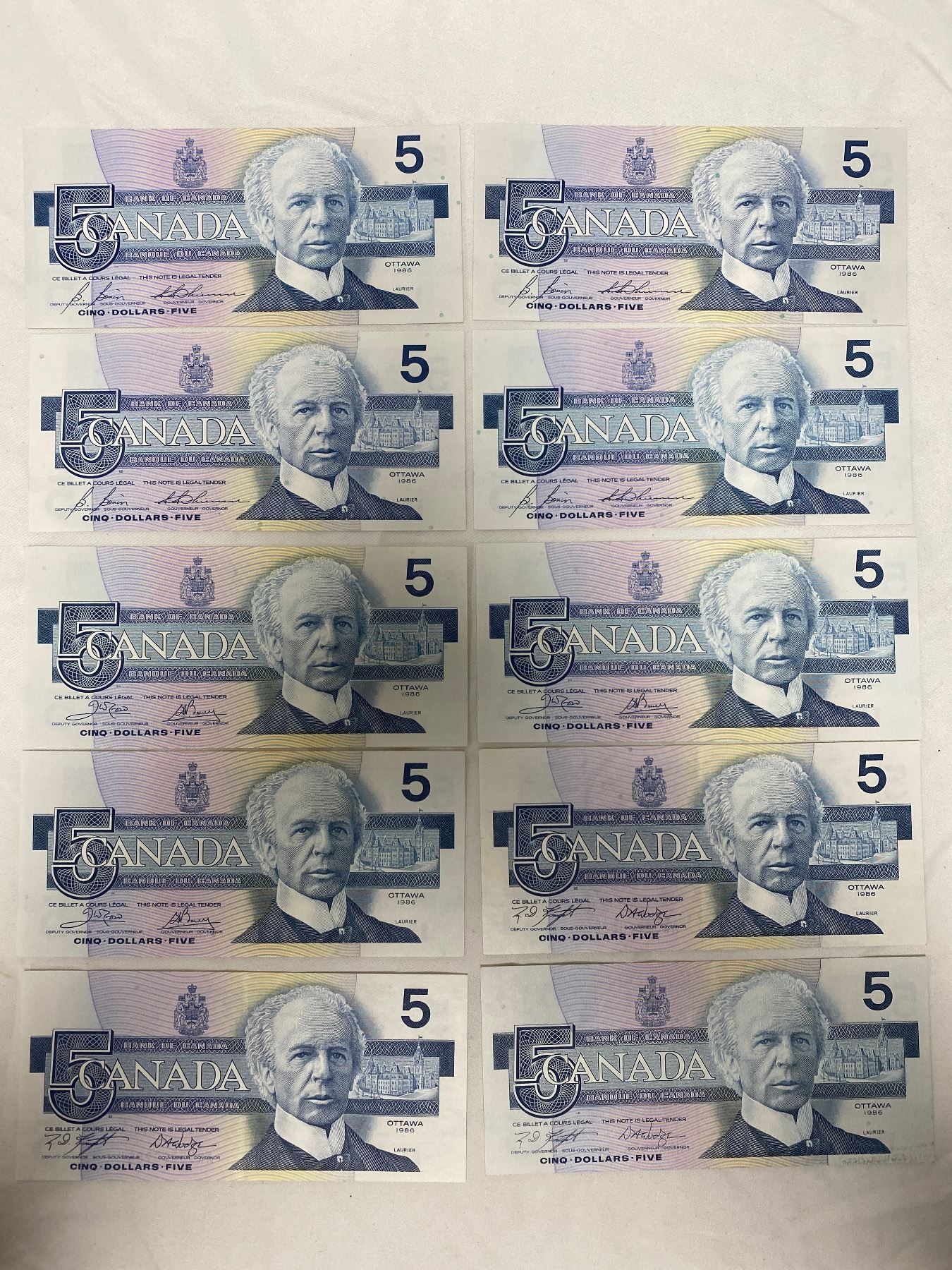 10 1986 Canadian $5 Bills