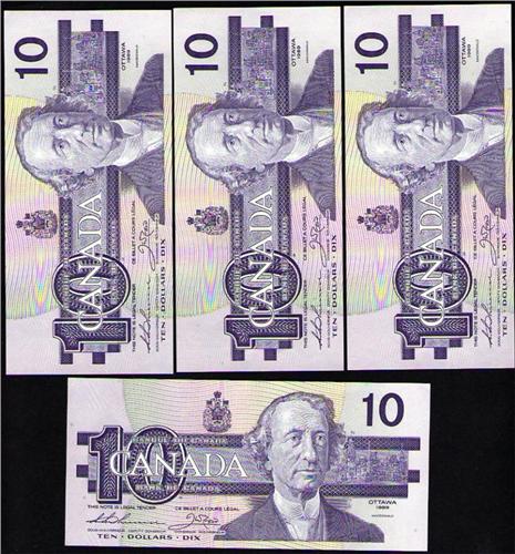 10$ 1989 OTTAWA UNC (4 FOLLOWING NUMBERS)