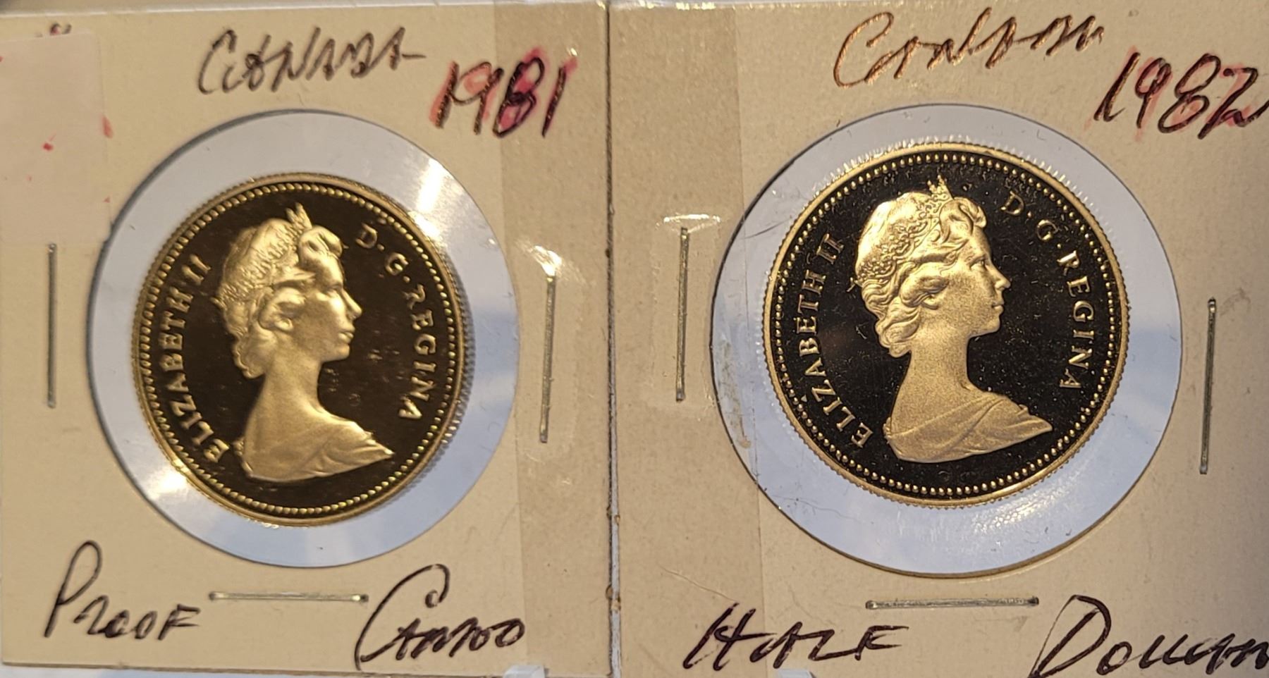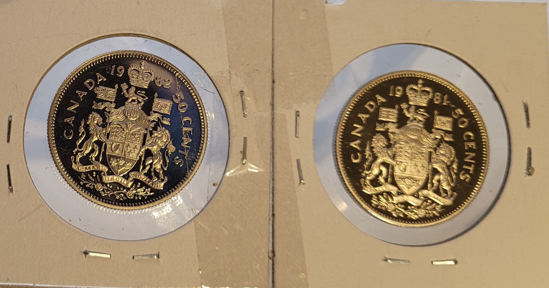 10) 2 PROOF CANADIAN 1/2 DOLLAR COINS, 1981 & 198