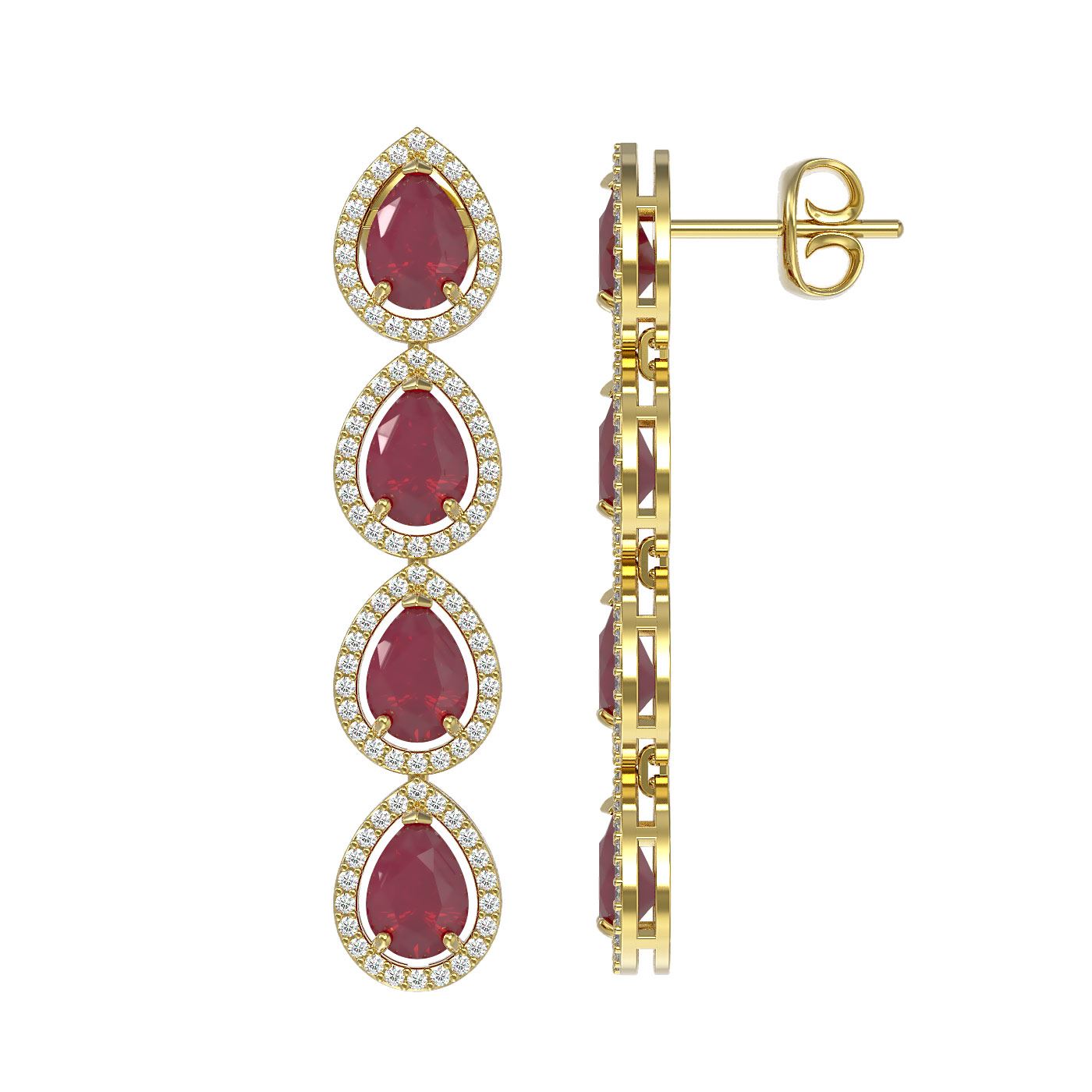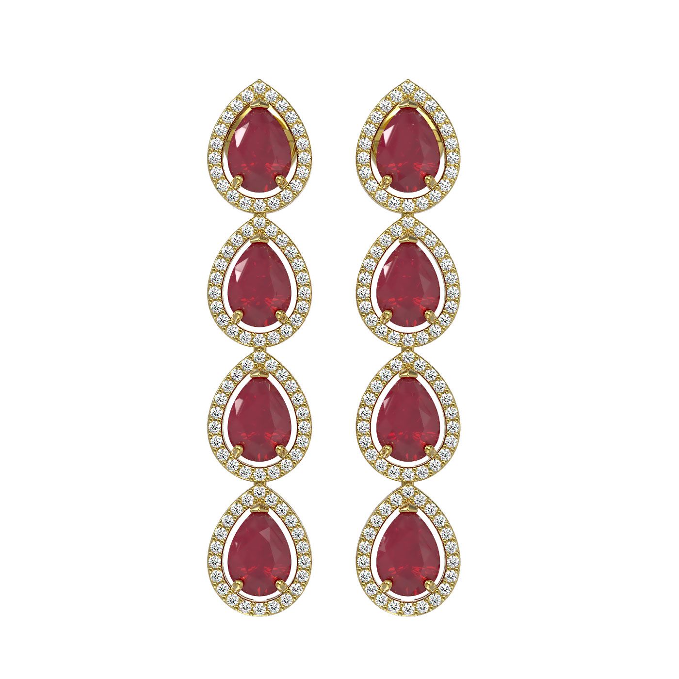 REF-155X5A - SKU: 41143 ---- 10.2 ctw Ruby & Diamond Micro Pave Halo Earrings 10k Yellow Gold