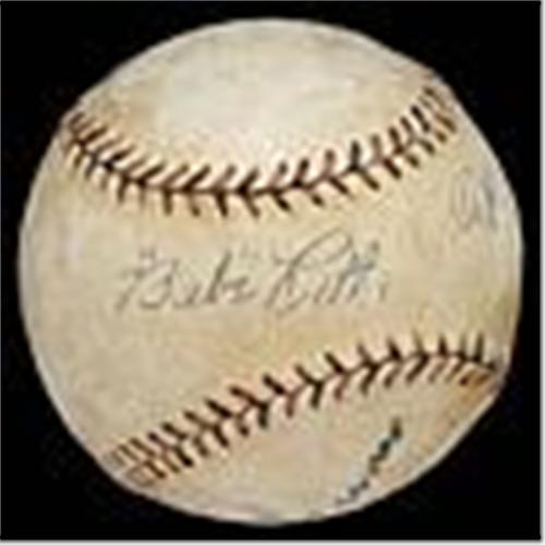 Babe Ruth's signature is by far the most popular and sought after autograph in the hobby today. It is of course most prized on a baseball, exemplifying the game that made him a household name around the world. Having hit "only" 25 home runs in 1925, many in the press suggested that the Sultan of Swat was past his prime, but the Babe would soon change that opinion. His best years, apparently, had not yet arrived. In 1926, the Bambino batted an extraordinarily impressive .372 with an astonishing .516 on base percentage. With 184 hits and 146 RBIs, he also managed to belt out 47 homers to lead the league, which he would do 12 times in his career. Further, Ruth hit three homers in Game Four of the World Series, a feat he would repeat two years later in Game Four of the 1928 Fall Classic. It is well established that, for all the feats that Ruth is famous for, the apex is his ability to hit the home run. Whether young or old, healthy or under the weather, Ruth could hit a homer practically on command. In the home run hitting field, although some came before him and many came after him, not one has come close to approaching Babe Ruth's flair and panash in executing this very specialized task. This spectacular blue and red stitched Reach OAL baseball bears the stamp of "A.T. Baum" on the bottom panel; Allan T. Baum was the President of the Pacific Coast League (PCL) from 1912-1919. The inimitable Babe Ruth has penned his signature in blue fountain pen on the sweet spot, the quote marks around "Babe" being indicative of Ruth's signature during this period. On the side panel, Ruth has dated the ball "Oct. 20/19" in his own hand. This is one of the five earliest known dated Babe Ruth autographed baseballs and perhaps the only single! There is an unexplained abrasion on the ball, but under the ultraviolet lamp no evidence of other any other signature appears, making this a true single and thus a true rarity. The ball is toned and shows some spotting, the Ruth signature grades a near-9 with date inscription that grades a strong 8. Accompanied by a LOA from JSA.