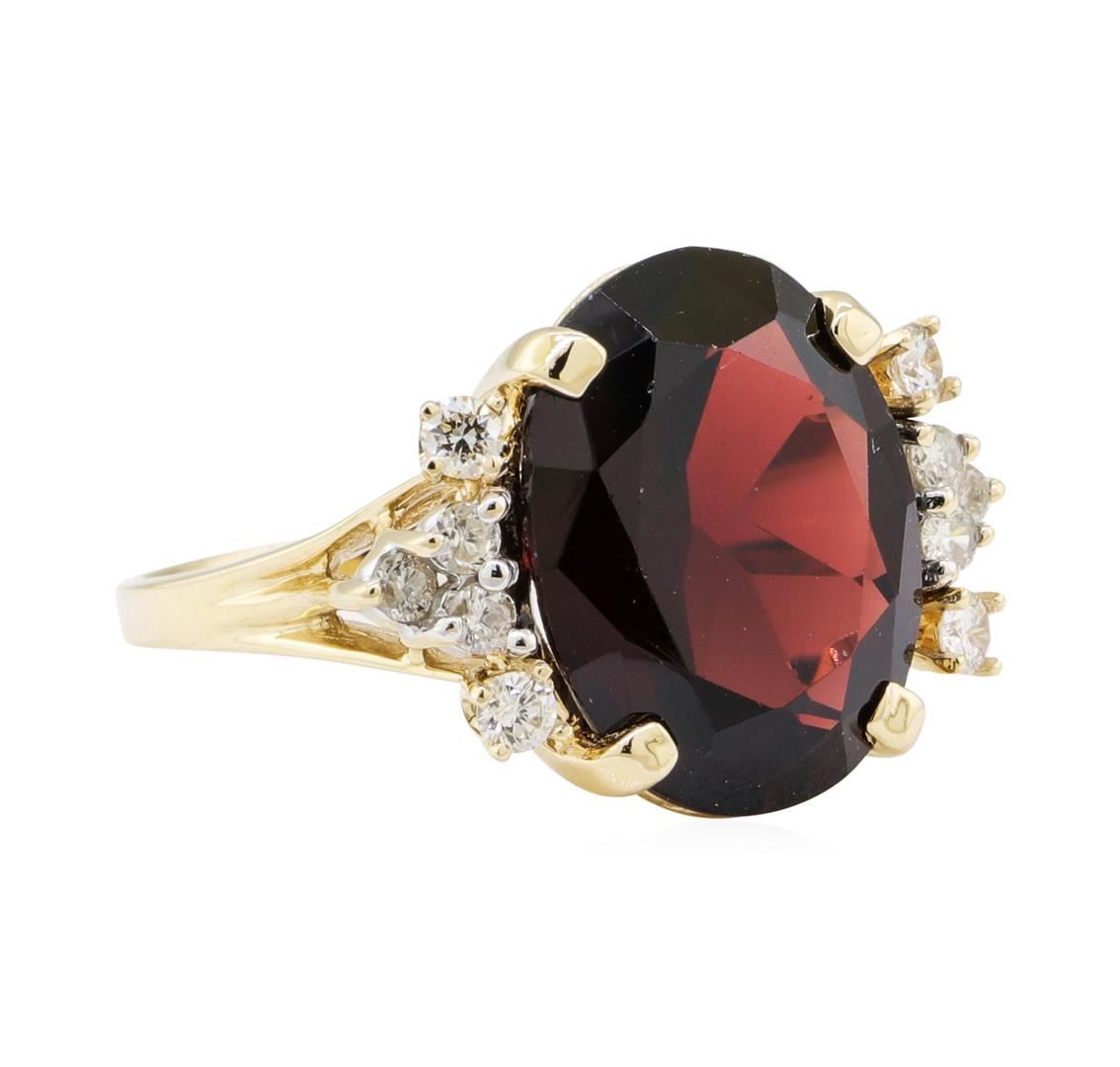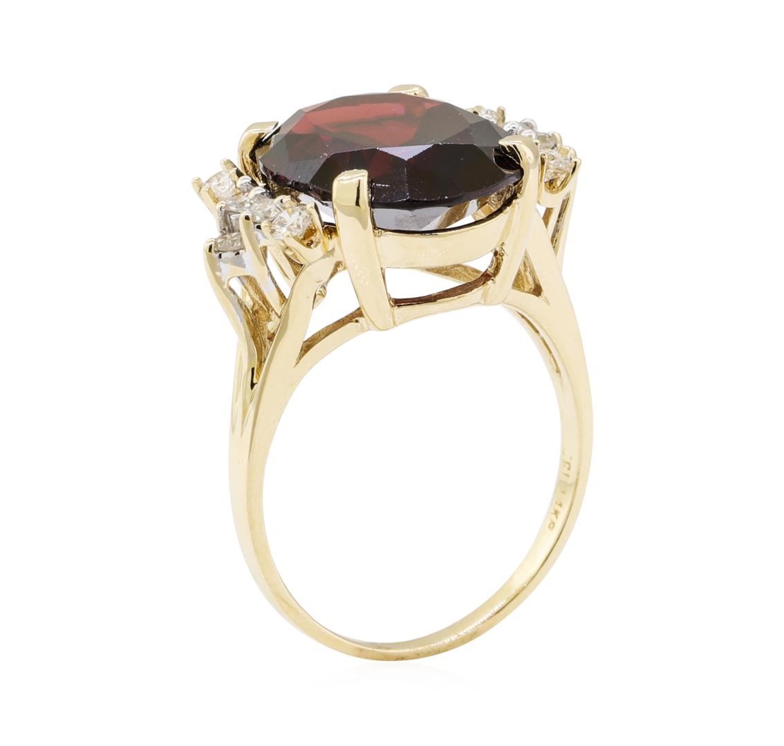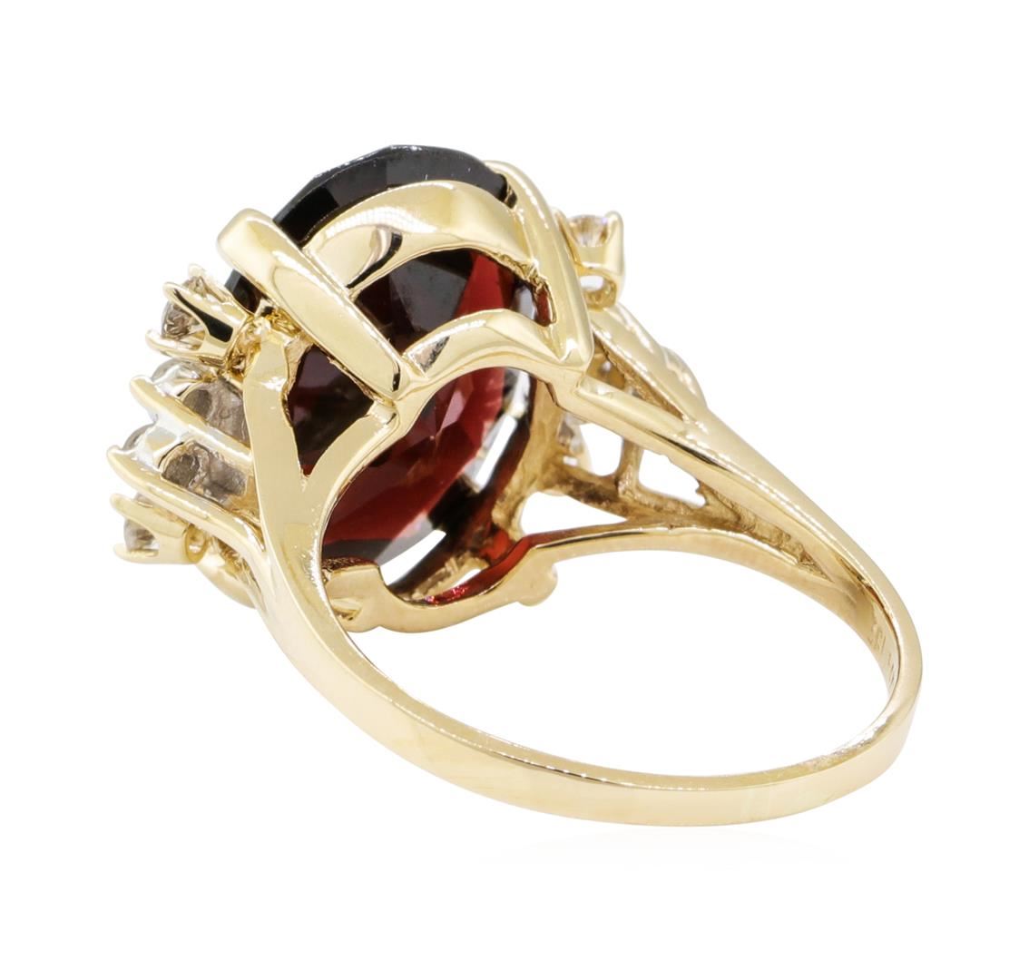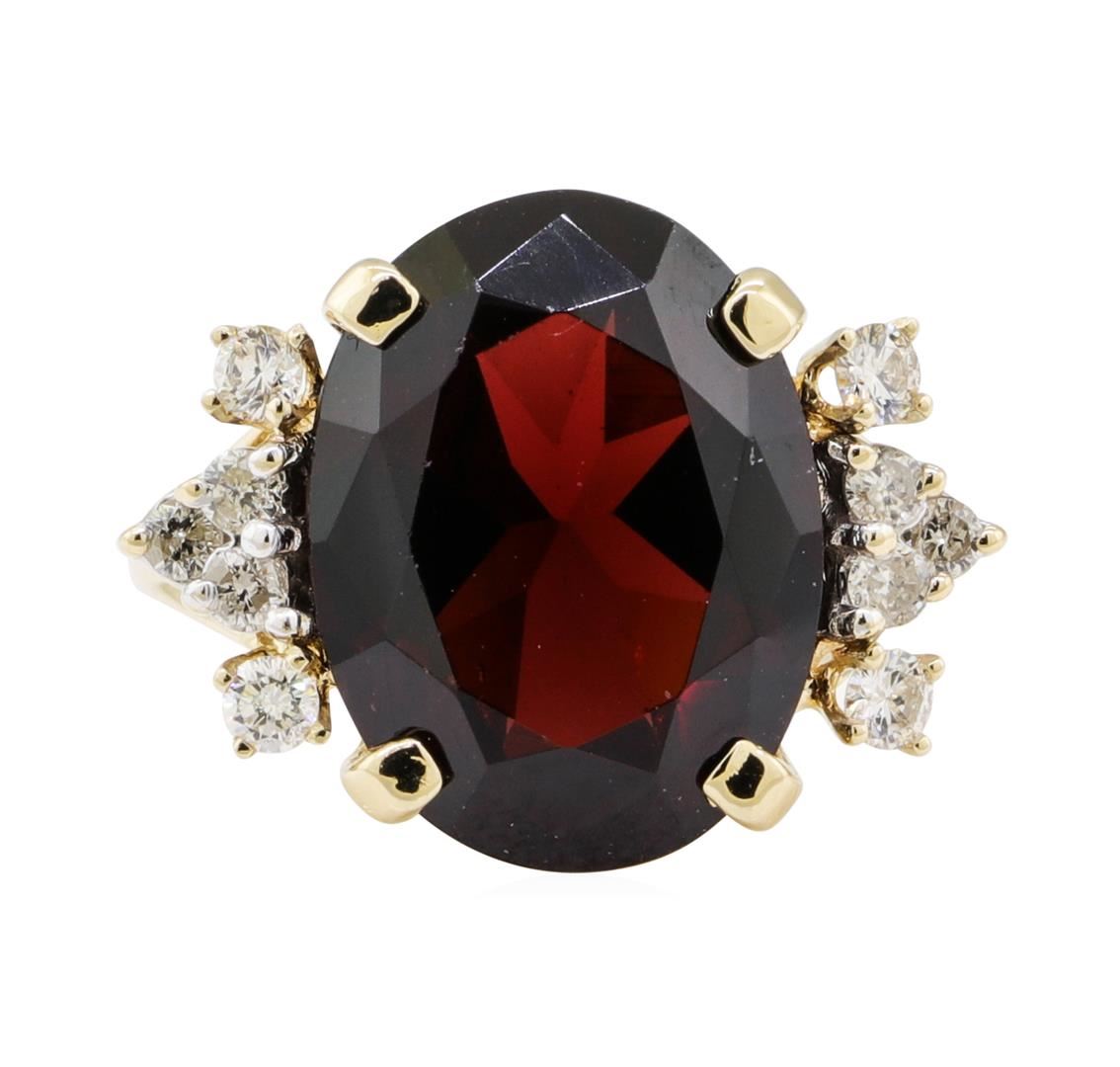 One ring featuring: 14KT yellow gold weighing 6.7 grams containing one garnet weighing 9.80 ct and diamonds weighing 0.40 ctw.