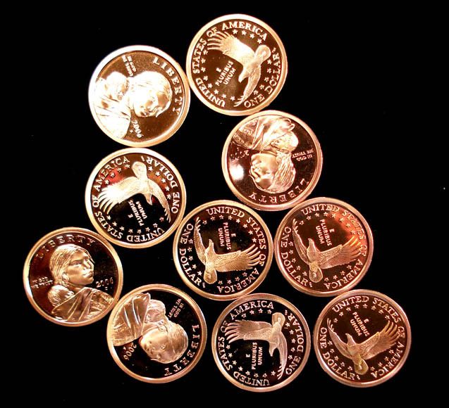 10 2006 PROOF SACAGAWEA DOLLARS, PULLED FROM PROOF SETS