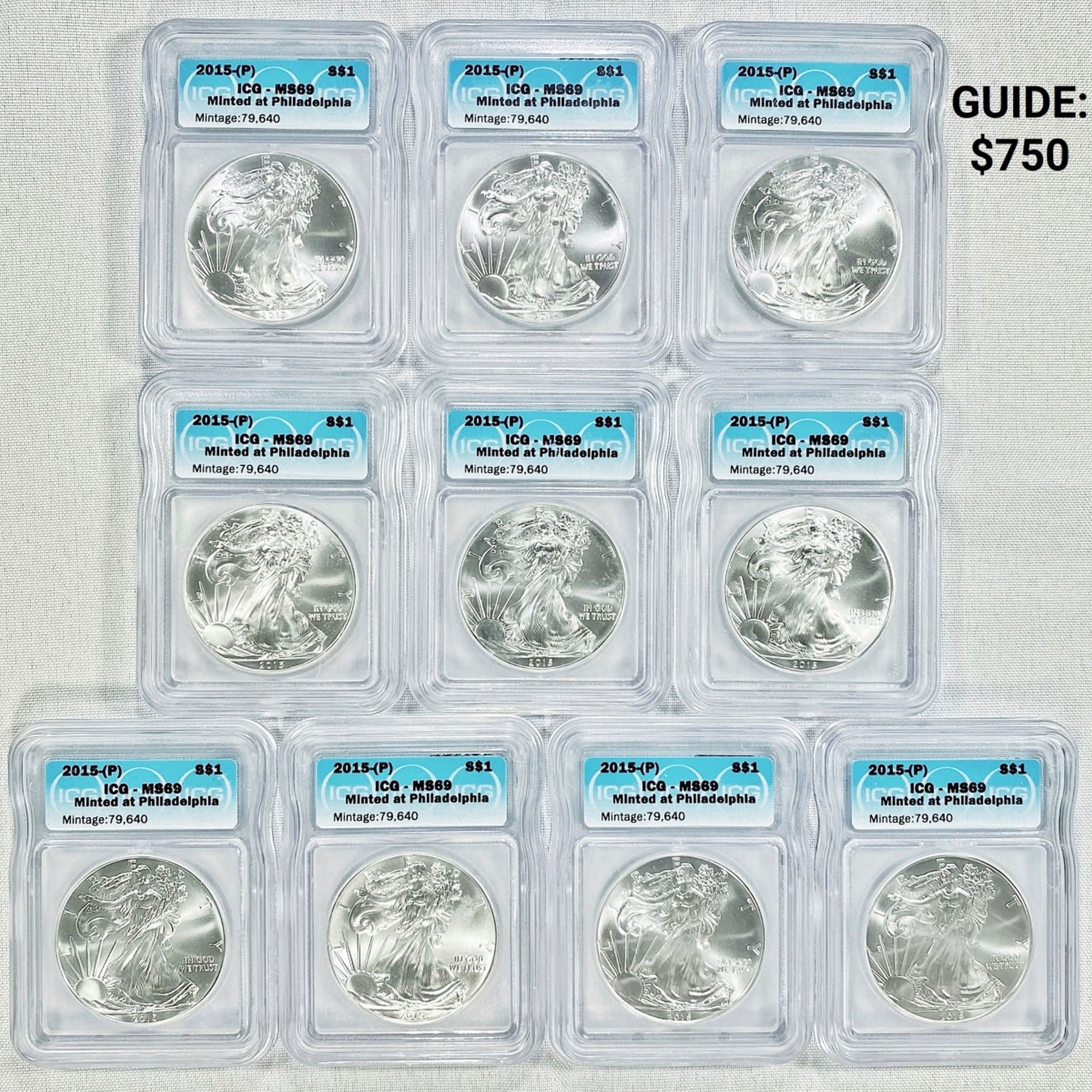 (10) 2015(P) American Silver Eagle ICG-MS69 RARE