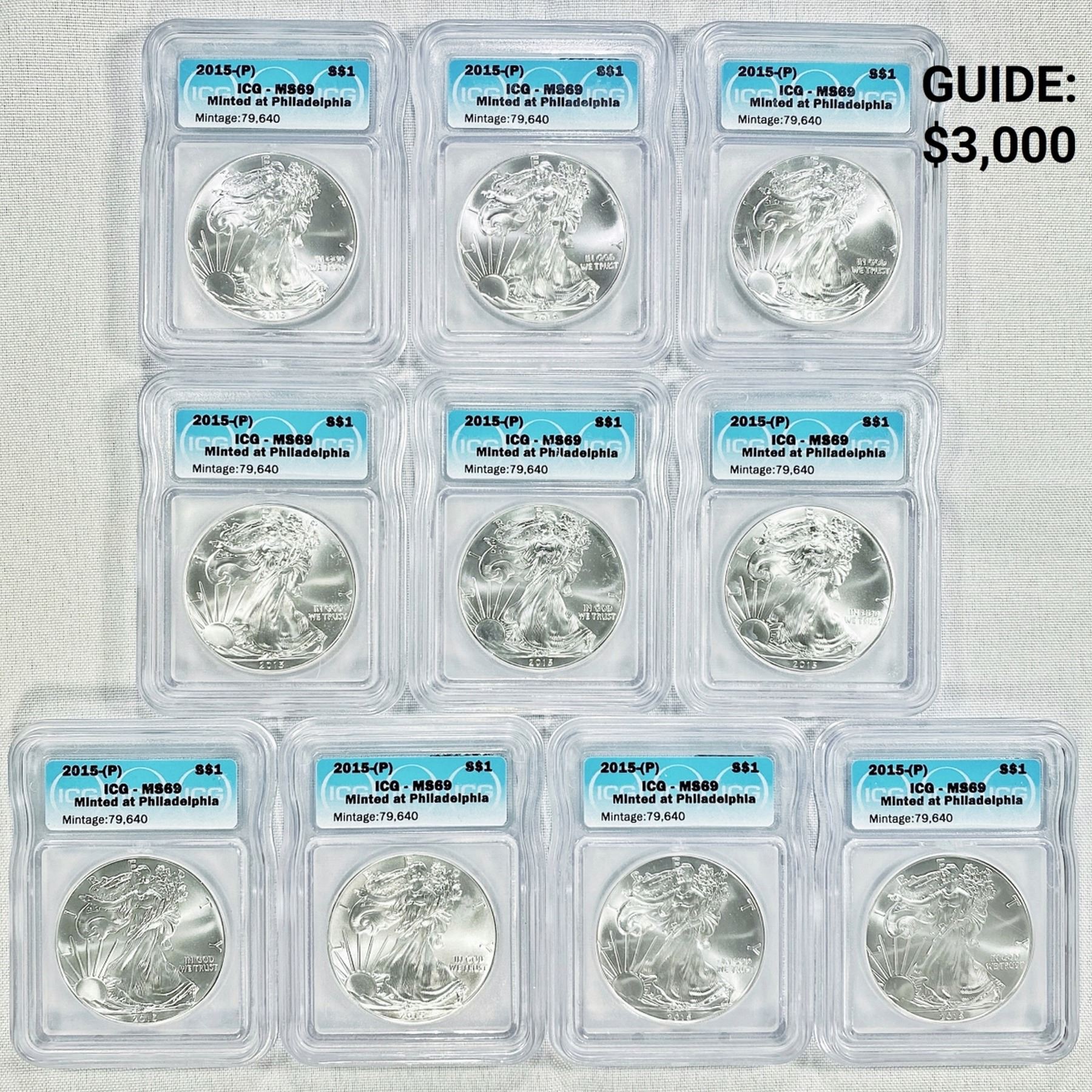 (10) 2015(P) American Silver Eagle ICG-MS69 RARE