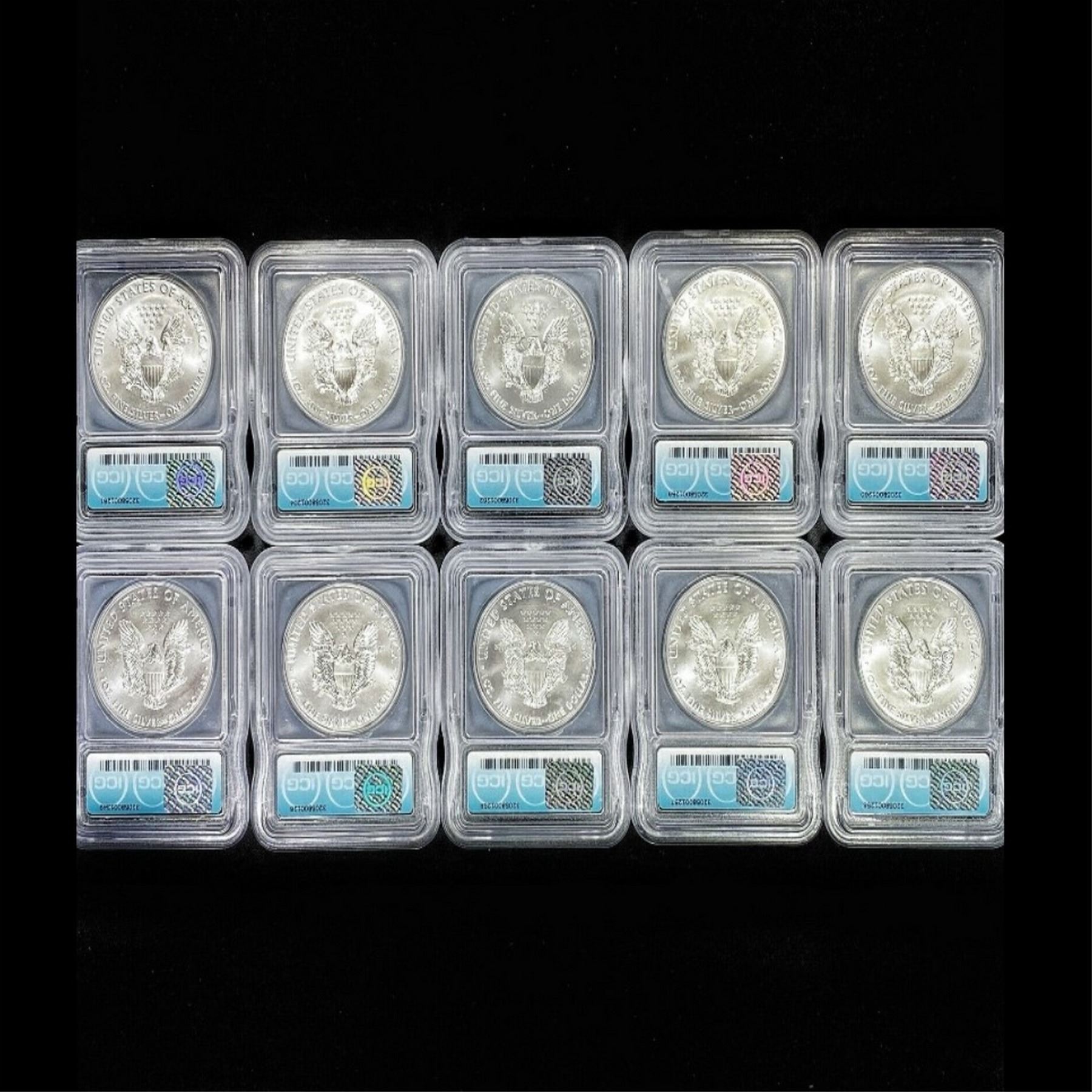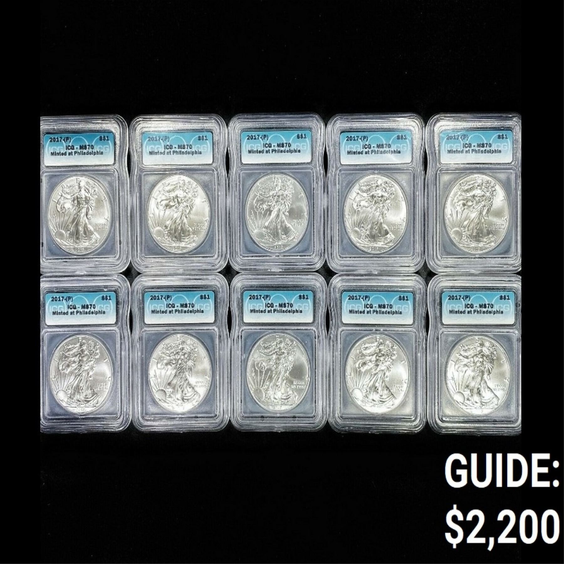(10) 2017-P RARE American Silver Eagle ICG-MS70