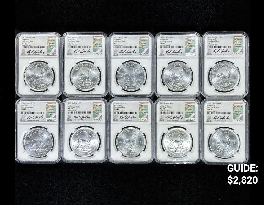 (10) 2021 S. Africa Silver Kruggerand NGC - MS70