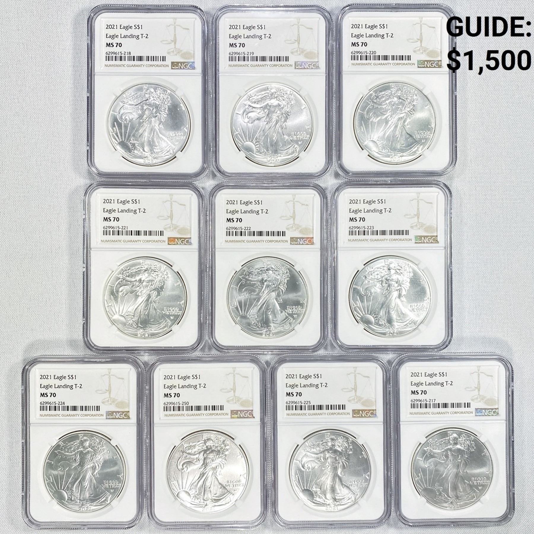 (10) 2021 TY2 American Silver Eagles NGC - MS70