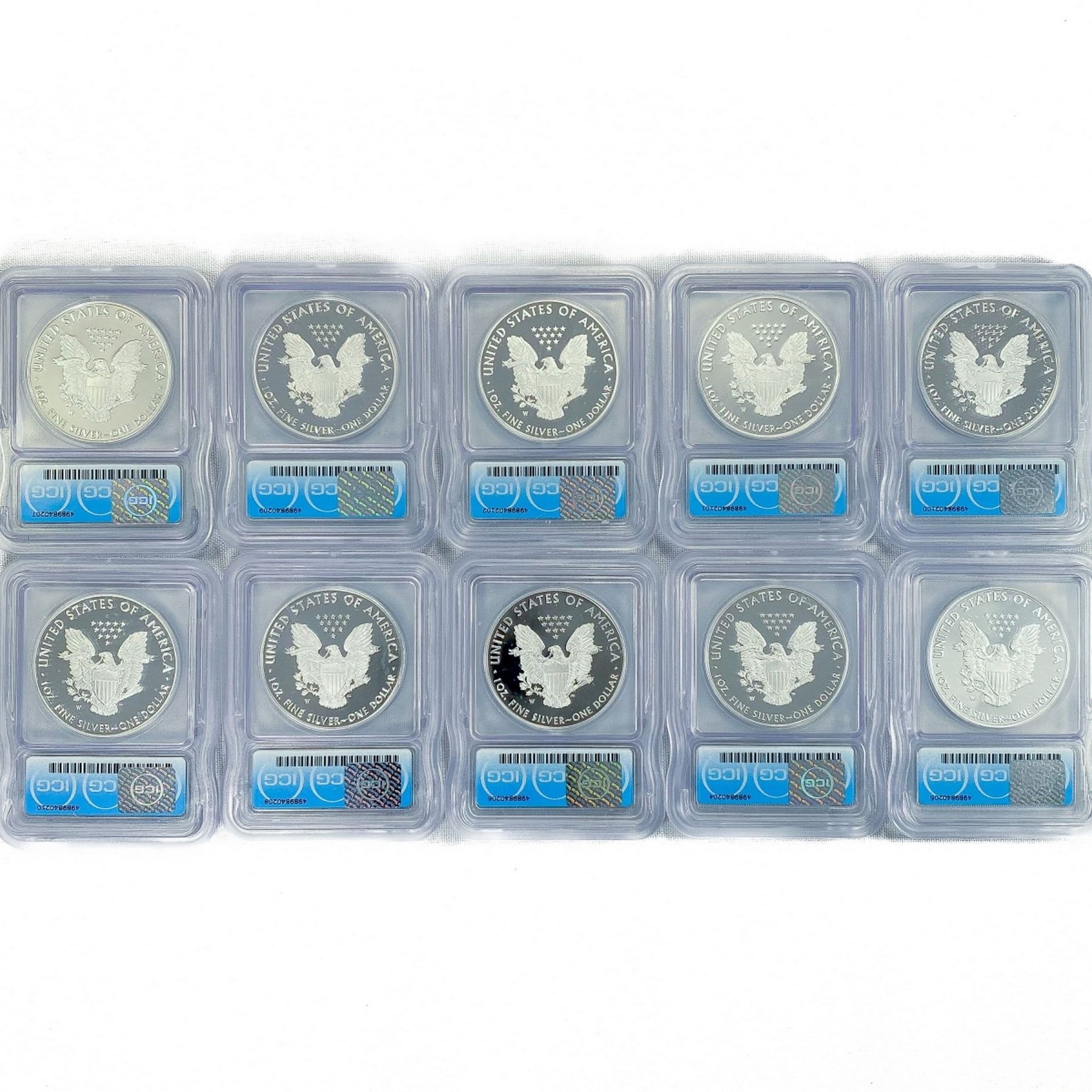 10 2021-W American Silver Eagles ICG-PR70 DCAM