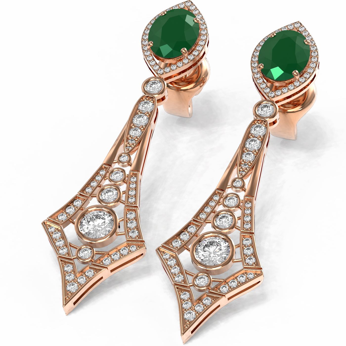 SKU: 56250 ---- 10.22 ctw Emerald & Diamond Earrings 18K Rose Gold