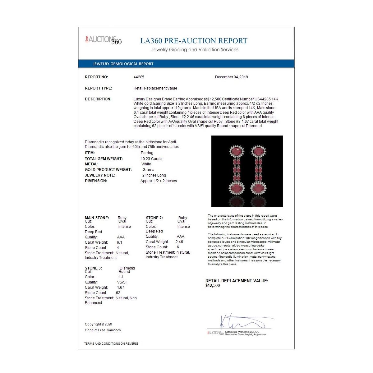 ALL LOTS ARE SOLD "AS IS" "WHERE IS". ALL SALES ARE FINAL. Bidders agree to pay a 19% buyer's premium added to the hammer price of the lot being auctioned. Condition reports and/or Gemological reports in Liquidation catalog are not guaranteed and may vary in accuracy. It is the responsibility of prospective bidders to inspect the goods. All reports, measurements, opinion of values, age and quality are offered not guaranteed. Neither the Liquidation house, nor the consignor, is responsible for the accuracy of printed or verbal descriptions or its authenticity. All jewelry items sold by Federal Government Liquidation are evaluated by third party appraisal firms where certified GIA gemologists evaluate the weight, size and grade of gemstone and/or metal to determine the replacement value of the item. Please be advised that all appraisals are done for insurance purposes only and do not determine the actual value of the jewelry on Liquidation. The appraisals are done for the sole purpose of protecting the buyer in the event of damage or loss of purchased jewelry items from Federal Government Liquidation. Federal Government Liquidation is not responsible for the opinions and appraisals of any third party appraisal firms and their experts.