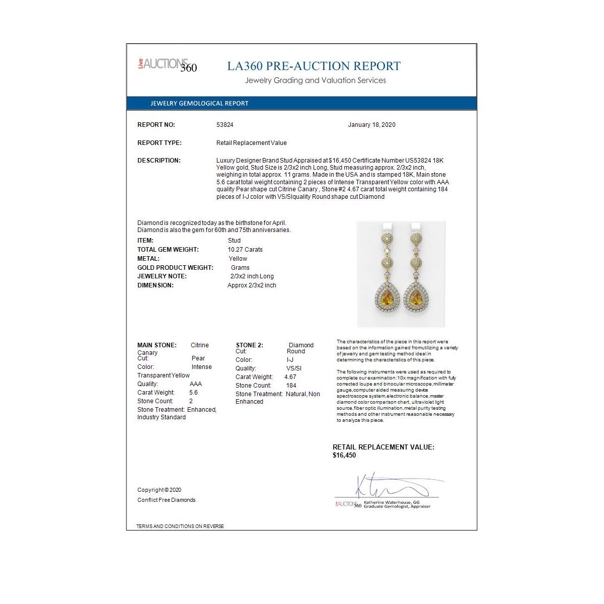 REF-374Y4X - SKU: 53824 ---- 10.27 ctw Canary Citrine & Diamond Earrings 18K Yellow Gold
